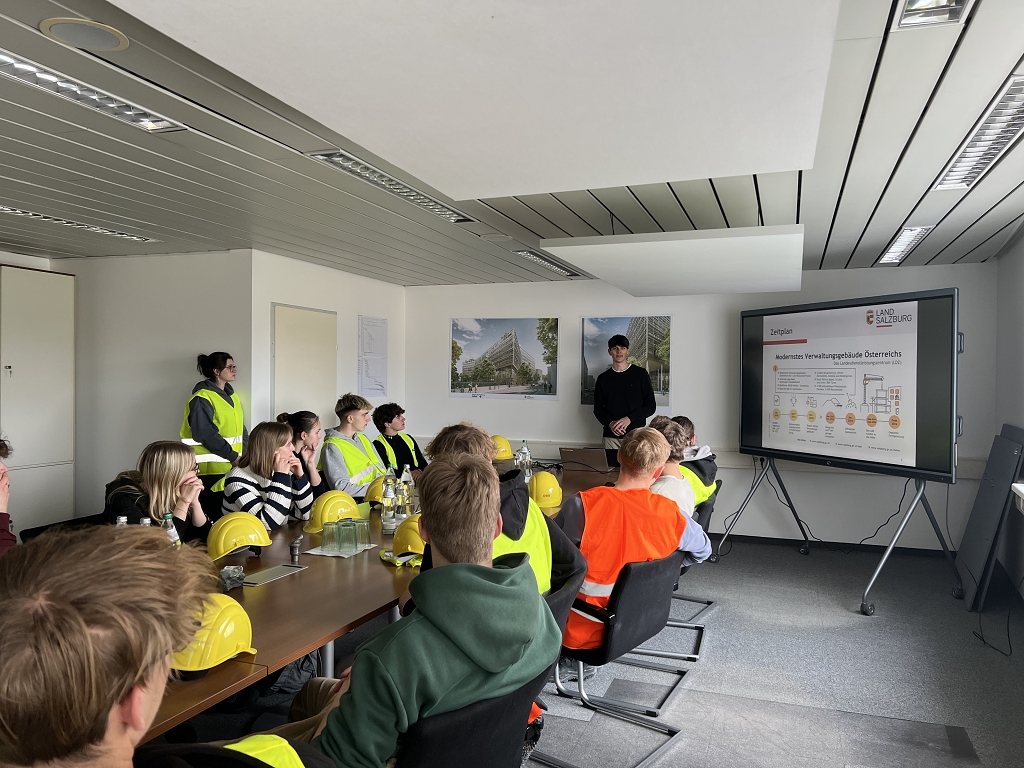 Eine außerordentlich interessante Baustelle konnte die 3CHBTH mit dem Besuch des neuen Landesdienstleistungszentrums in der Stadt Salzburg kennenlernen.