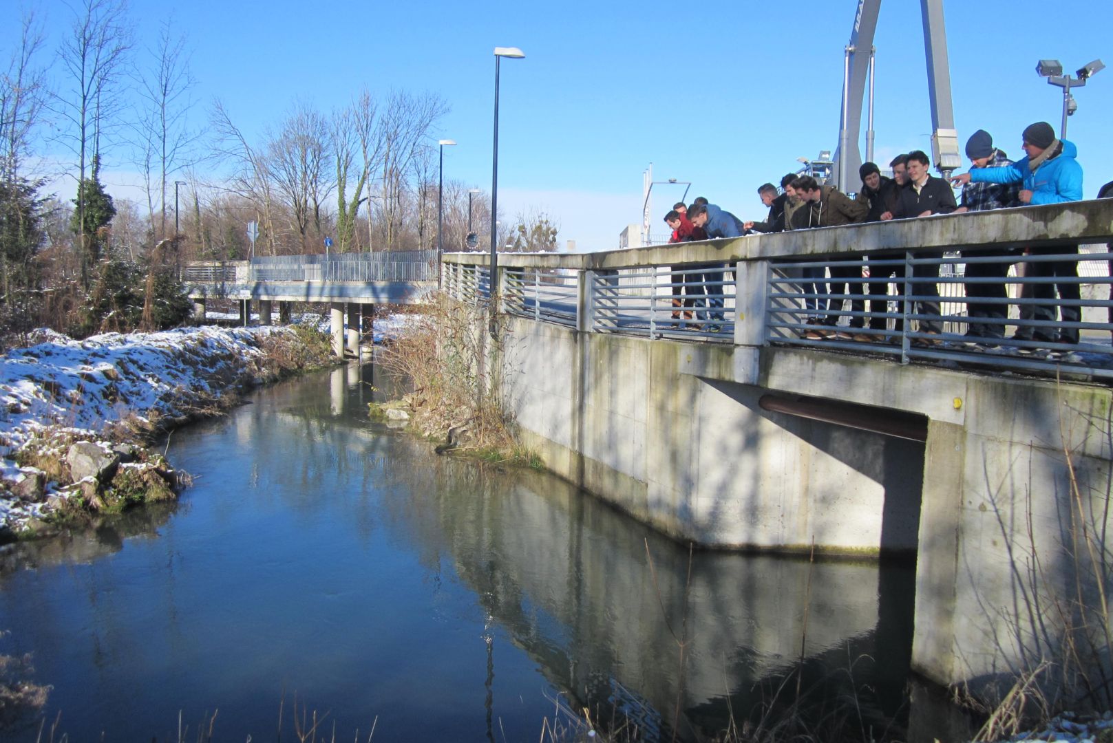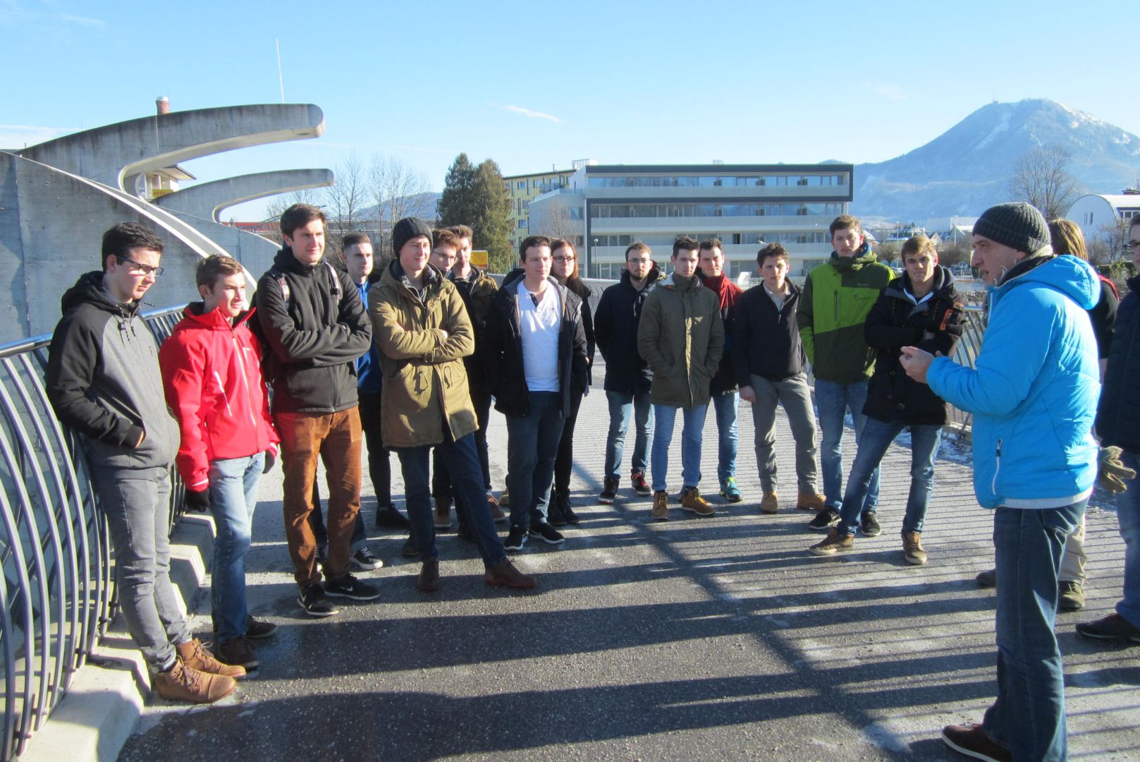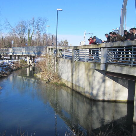 Die Schülerinnen und Schüler des Abschlussjahrganges Tiefbau informierten sich vor Ort als Ergänzung zum Lehrplaninhalt Wasserbau – Hydrobiologische Grundlagen über die dazu beim Kraftwerk Sohlstufe Lehen ausgeführten Maßnahmen. Die technischen Erläuterungen zum Kraftwerk Sohlstufe Lehen wurden von Herrn Ing. Grießner, Salzburg AG, vorgebracht. Sowohl das neue Umgehungsgerinne mit Revitalisierung des Parkes am Glanspitz als auch die Fischaufstiegshilfe samt Monitoringeinrichtung wurden genau betrachtet und auf Anwendung der im Unterricht genannten Kriterien geprüft.