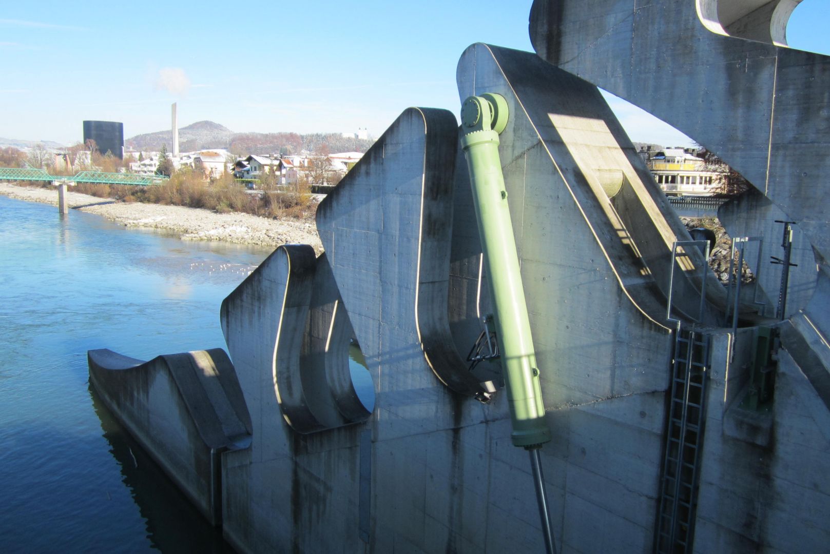INFO: Die alte Sohlstufe, die in den Jahren von 1965 bis 1968 errichtet wurde, entsprach nicht mehr den ökologischen und technischen Anforderungen der Zeit, weil sie einerseits für Fische und andere Flusslebewesen wie ein „Eiserner Vorhang“ wirkte und andererseits die Eintiefung der Salzach flussabwärts nicht verhindern konnte. Das Kraftwerk Sohlstufe Lehen wurde von den Architekten Max Rieder und Erich Wagner geplant. Nach drei Jahren Bauzeit wurde 2013 der Aufstau vorgenommen. Quelle: Salzburg AG
