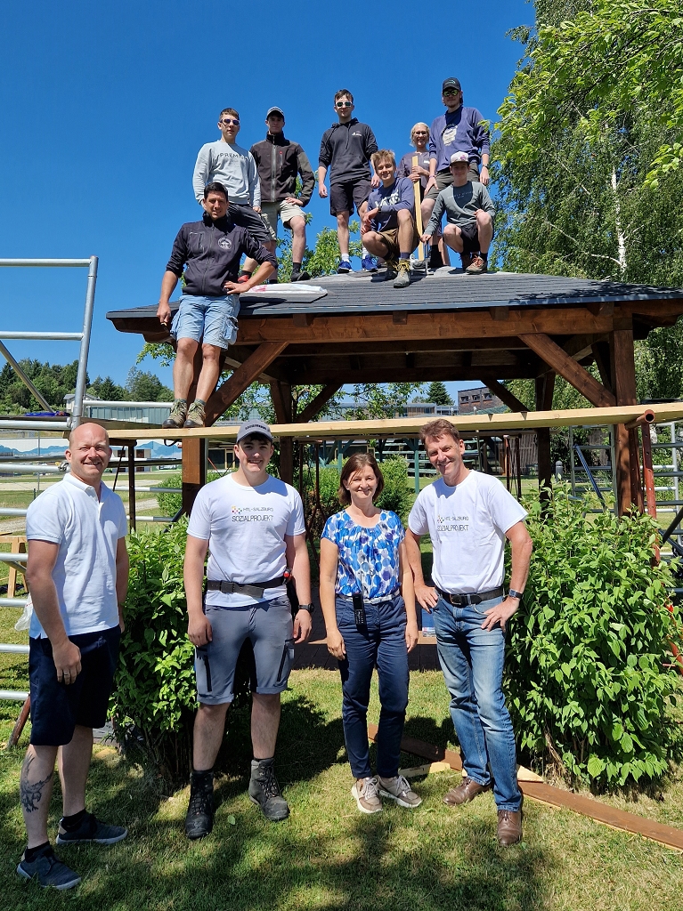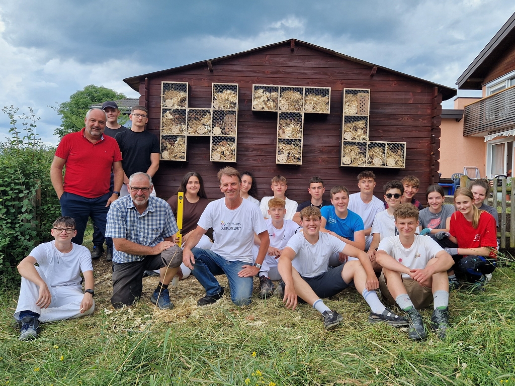 - bereits zum 5. Mal arbeiteten wir im SOS Kinderdorf-Seekirchen: Wir haben „Arbeiten rund ums Haus“ (Garten- Maler- u. kleine Bauarbeiten usw.) ausgeführt und ein Insektenhotel gebaut.