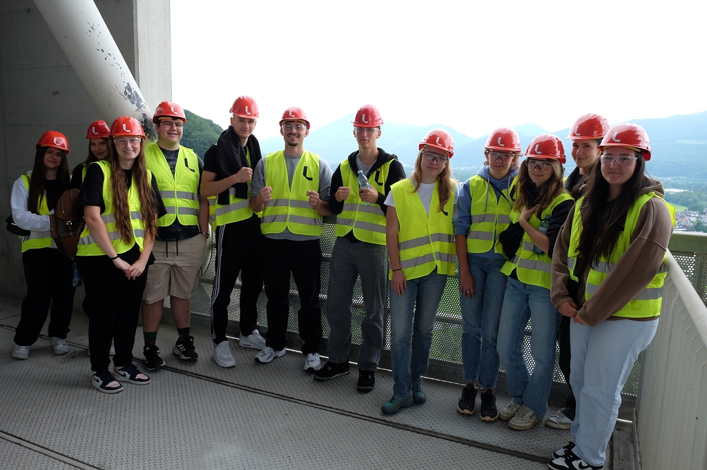 Die 3AHBTH und die 3BHBTT fuhren gemeinsam mit dem Bus zum Leube Zementwerk in St. Leonhard bei Grödig. Dort angekommen wurden alle, Schüler wie Lehrer, mit gelben Warnwesten, Schutzhelm und Schutzbrille ausgestattet.