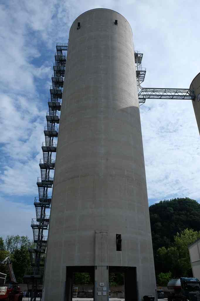 Der riesige Drehbrennofen war leider außer Betrieb, aber so konnten wir einen Blick in das Innere des Ofens werfen, der gerade einer Wartung unterzogen wurde. Auf dem 100m hohen Turm, auf dem sich der Zementbrennofen befindet, hat man einen sensationellen Blick über das Werk und die ganze Umgebung. Zuletzt haben wir uns noch die vollautomatische Zementabfüllanlage und Verpackung angesehen, wo der Zement in die Zementsäcke verpackt wird.