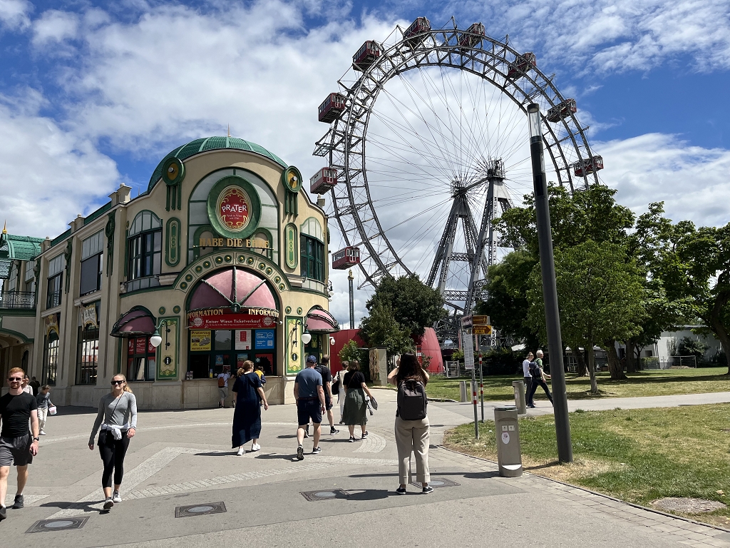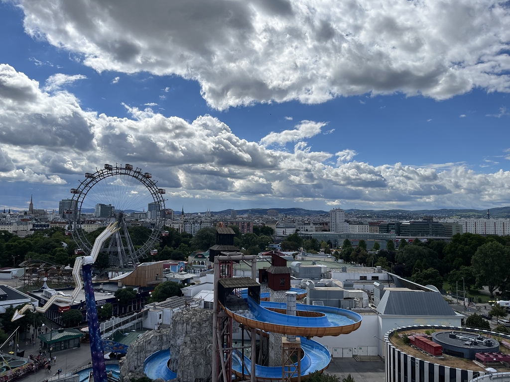 Weiter ging es mit der S- und U-Bahn zum Prater, wo wir die Möglichkeit hatten, Backstage zu gehen. Diesen Einblick ermöglichte uns Koidl Vergnügungsbetriebe, ein Familienunternehmen, das über Generationen derzeit 11 große Fahrgeschäfte am Wiener Prater anbietet. Neben dem Erfahren spannender technischer Details durften wir die Fahrgeschäfte auch auszuprobieren.