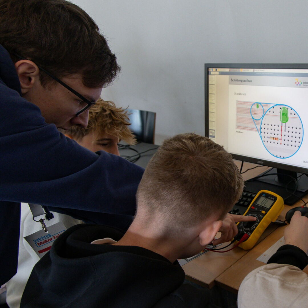 Die 4BHEL der HTL Salzburg begeistert bei den diesjährigen School MakerDays 2024 mit einem praxisnahen Workshop rund um den Raspberry Pi. Schüler und Schülerinnen anderer Schulen haben die Möglichkeit, eine eigene elektronische Schaltung zu entwickeln, zu dimensionieren und sie anschließend über den Pi anzusteuern. Ein Highlight: Die Teilnehmer arbeiten mit einem eigens von der HTL Salzburg entwickelten Pi-HAT (Hardware Attached on Top), der einfache und anschauliche Programmierbeispiele ermöglichte. In Kleingruppen mit bis zu drei Teilnehmern werden die Workshop-Besucher individuell von den HTL-Schülern betreut, sodass alle Fragen beantwortet und Fähigkeiten vertieft werden können.