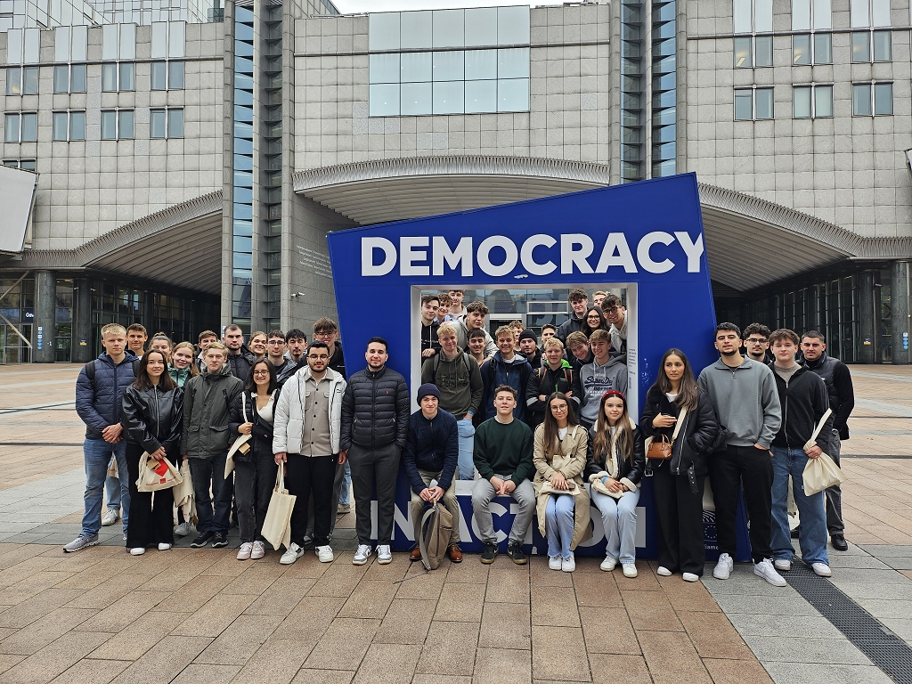 Am Dienstag starteten wir früh im Europäischen Parlament. Nach einem informativen Vortrag zur Bedeutung und Arbeitsweise der EU-Parlamentarier hatten wir die Gelegenheit, mit dem Abgeordneten Hannes Heide zu sprechen, bei dem wir uns herzlich für die Einladung bedanken möchten. Die Diskussion ermöglichte uns, eigene Fragen zu stellen und tiefere Einblicke in die komplexe Arbeit des Parlaments zu gewinnen. Auch der Besuch des Plenarsaals, wo uns die Arbeitsweise der Dolmetscher sowie der Ablauf einer Parlamentssitzung erklärt wurden, war für uns spannend. Im Anschluss ging es ins Haus der Geschichte, das eine anschauliche und detailreiche Ausstellung zur europäischen Geschichte bot. Den Tag rundete ein Besuch im Comic-Museum ab, wo wir belgische Klassiker wie „Tim und Struppi“ und „Lucky Luke“ entdeckten.