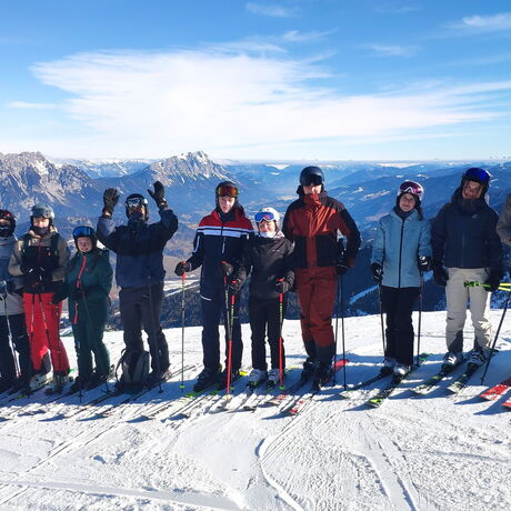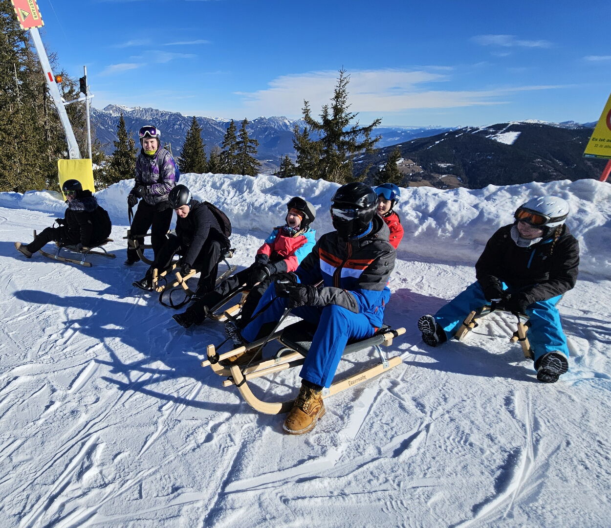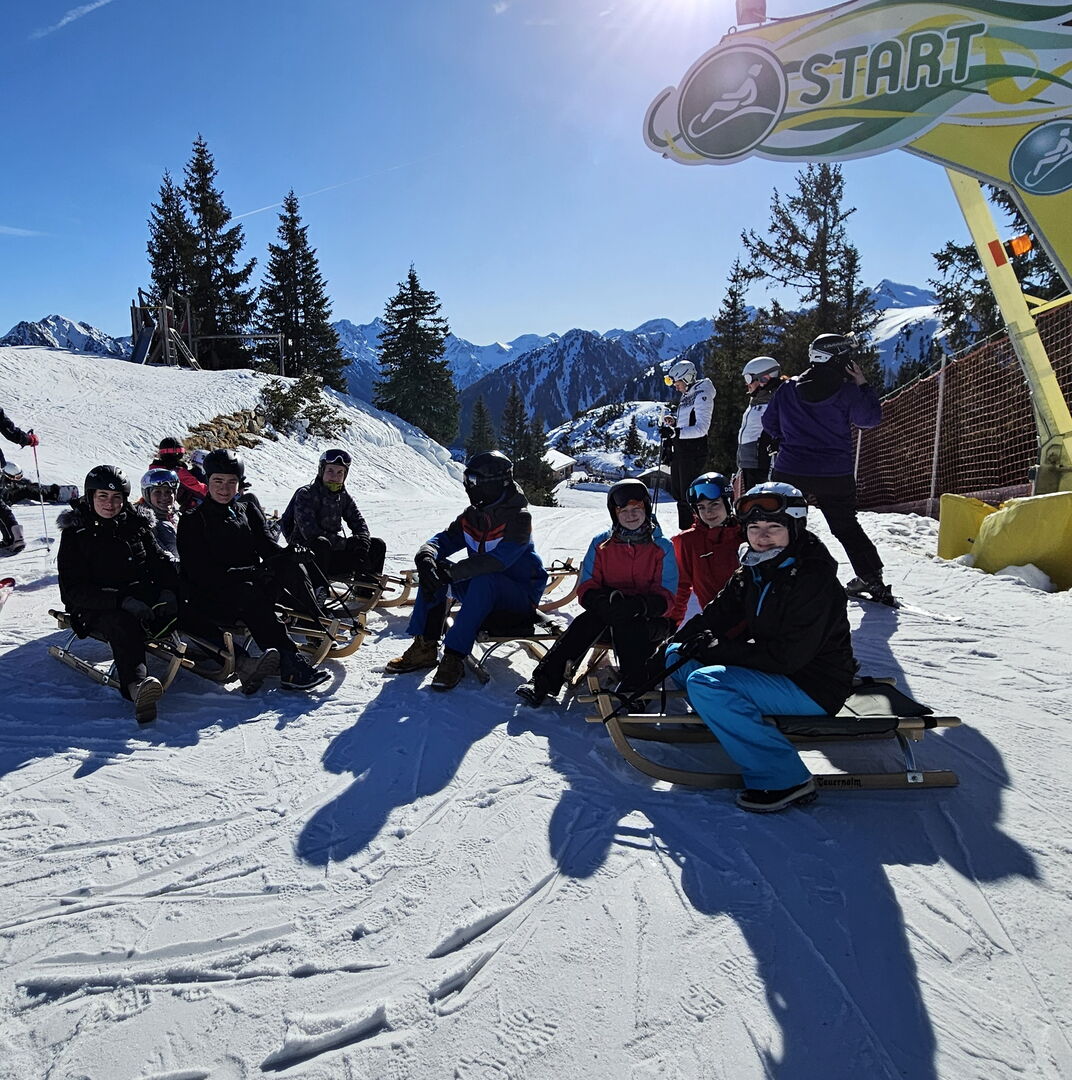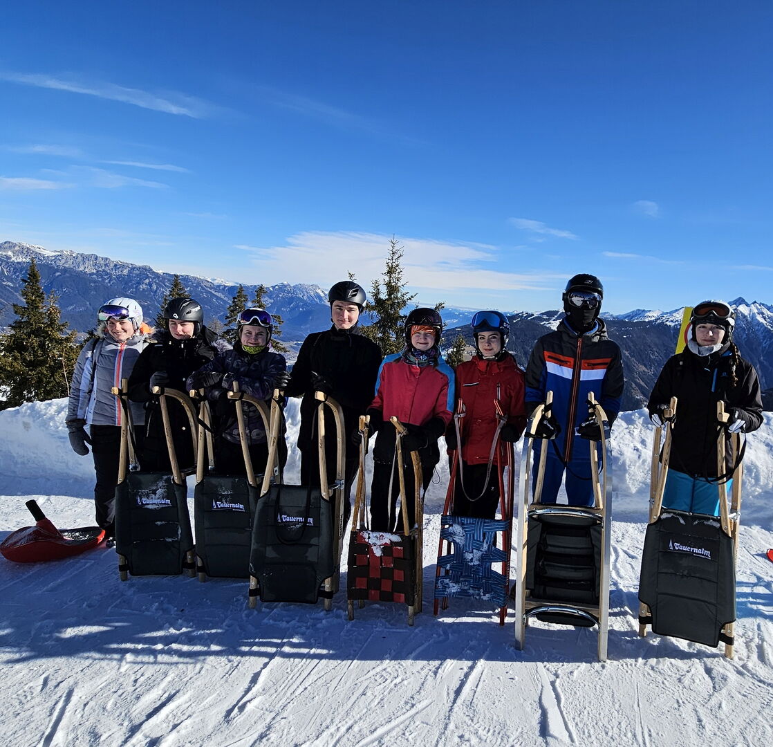 Gemeinsam mit Herr Professor Schragl, Herr Professor Klotz und dessen Frau – bestens gerüstet mit Humor und Geduld – machte sich die Klasse auf den Weg nach Schladming, um einen actiongeladenen Skitag zu verbringen. Dabei hatten die Schülerinnen und Schüler die Wahl: elegante Schwünge auf den bestens präparierten Pisten oder waghalsige Rodelrennen mit spektakulären Drifts und gelegentlichen unfreiwilligen Schneeproben.