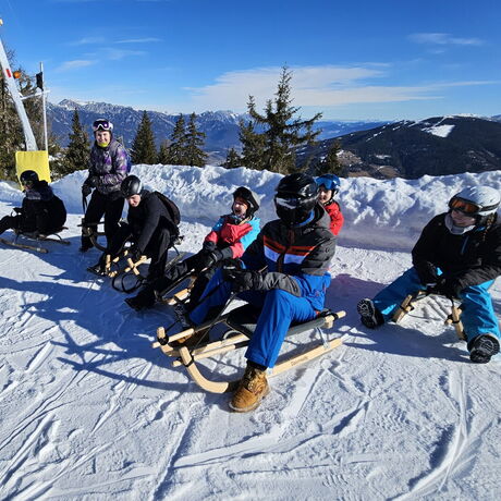 Zur Mittagspause kehrte die Gruppe in eine gemütliche Hütte ein, wo sie sich mit deftigen Speisen und warmen Getränken stärkten. Ob Kaiserschmarrn, Germknödel oder eine herzhafte Suppe – für jeden war etwas dabei, um sich für den restlichen Tag zu wappnen. Mit müden Beinen, roten Wangen und einem zufriedenen Lächeln blickten alle auf einen ereignisreichen Tag zurück, der nicht nur sportliche Höchstleistungen, sondern auch jede Menge Spaß und unvergessliche Erlebnisse mit sich brachte.