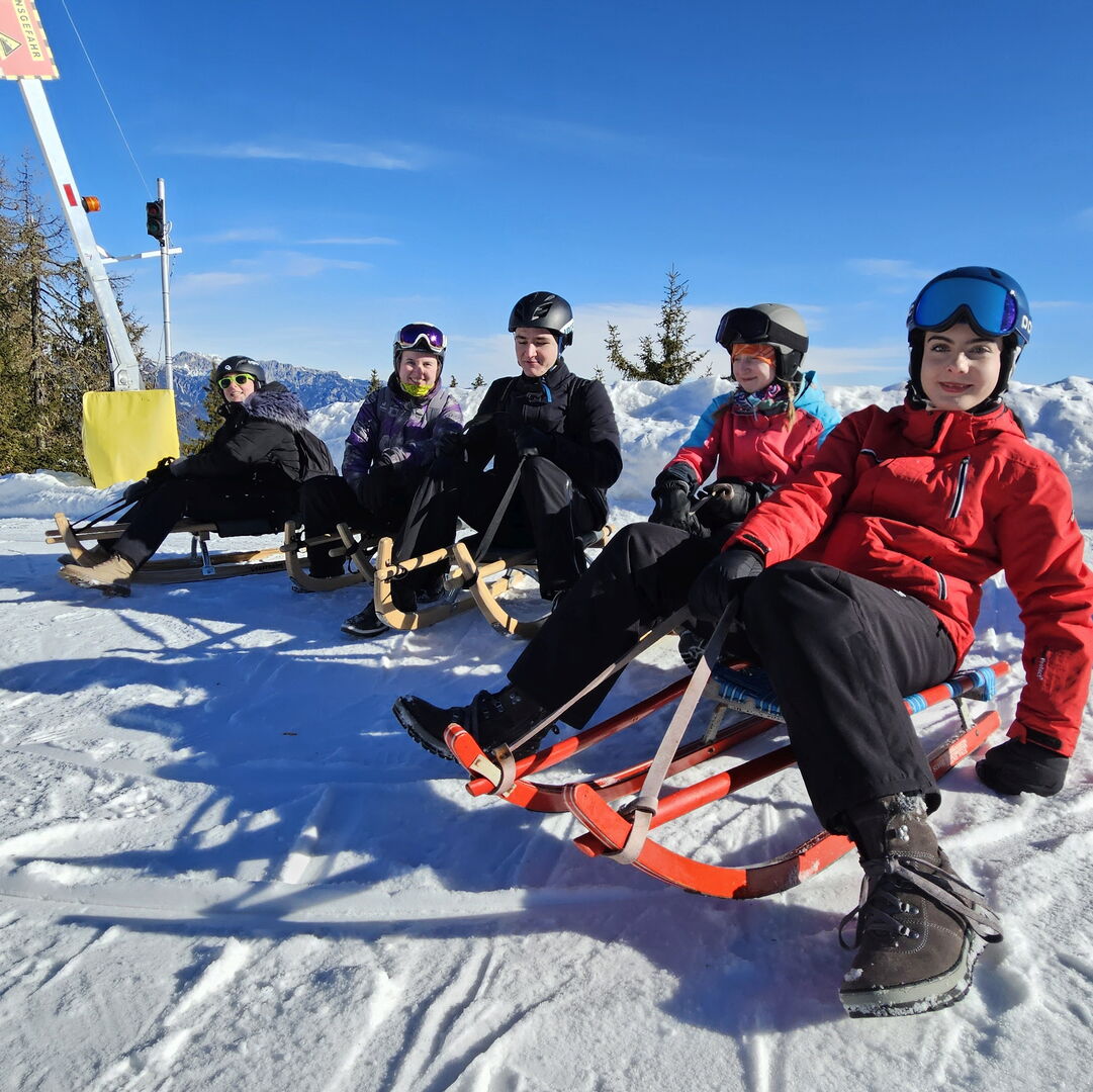 Raus aus den Klassenzimmern, rein ins Wintervergnügen – die 5AHBG tauschte Schulbücher gegen Skier und Rodeln und verbrachte einen actionreichen Skitag in Schladming!