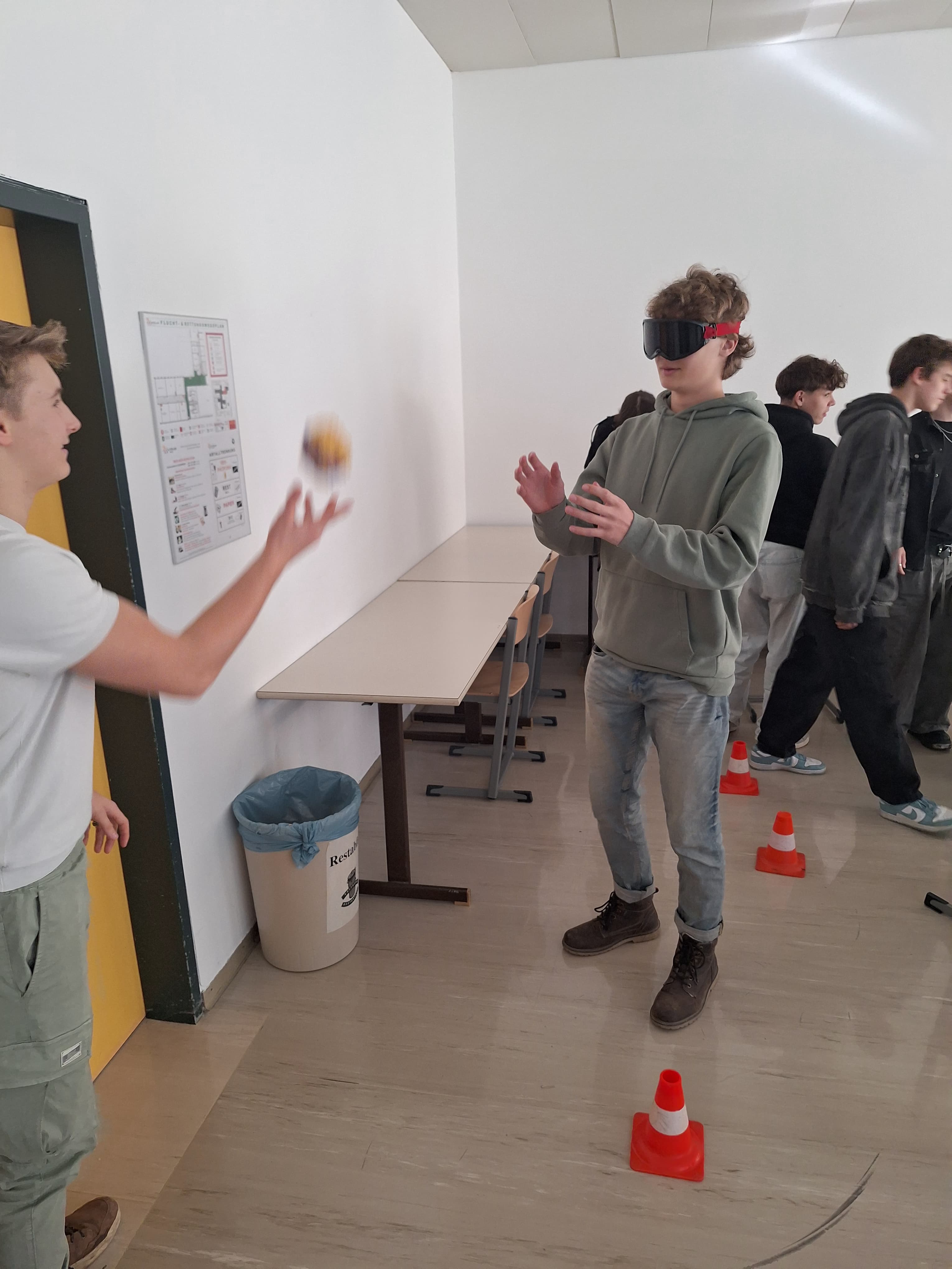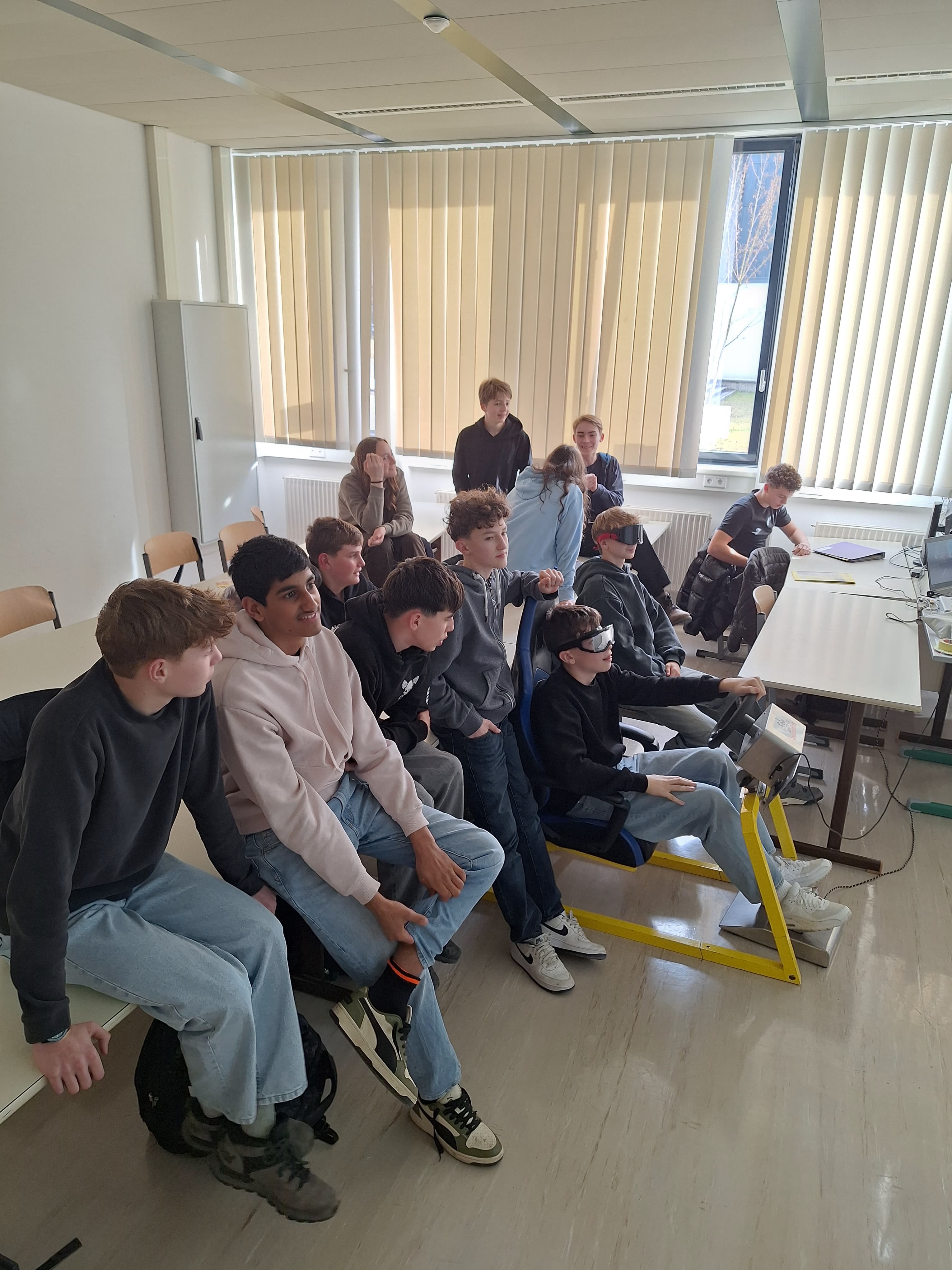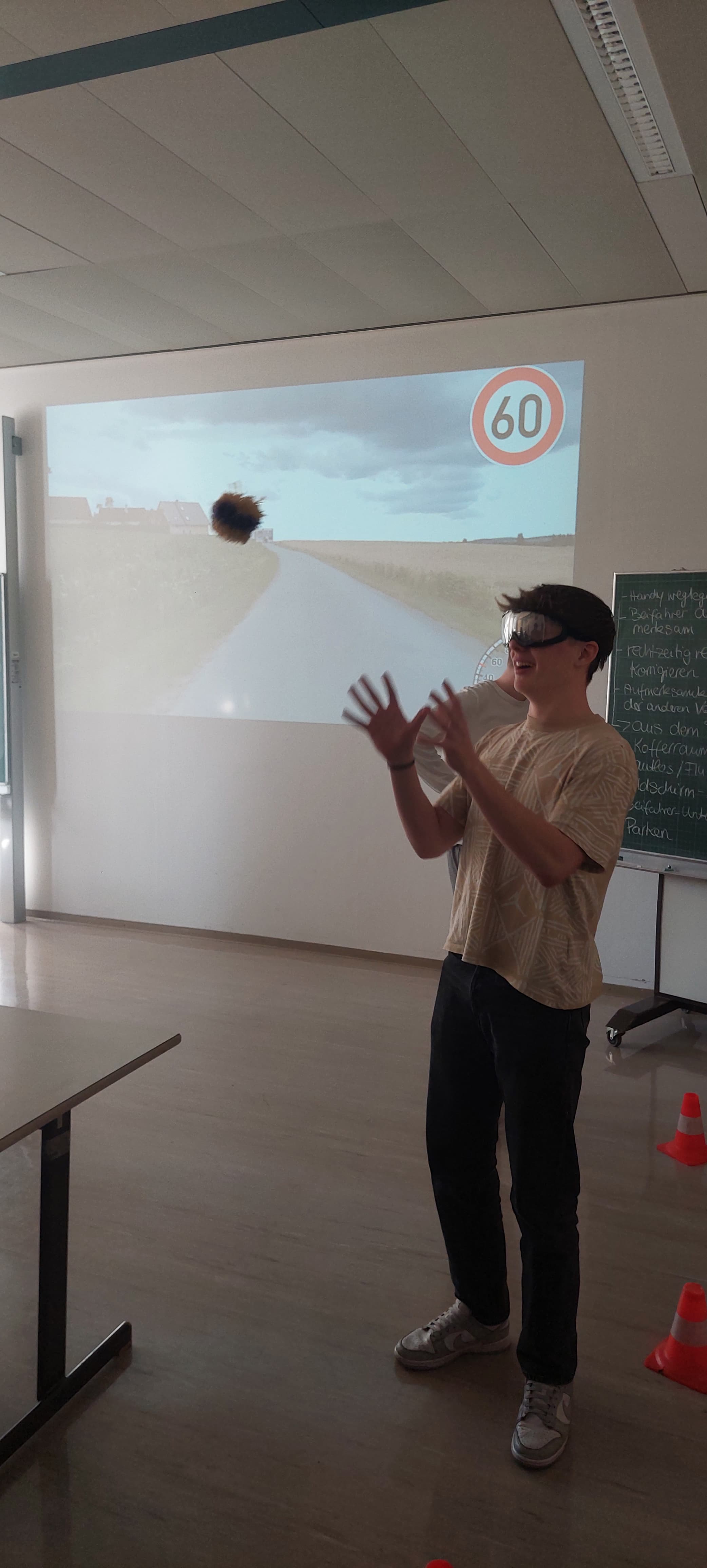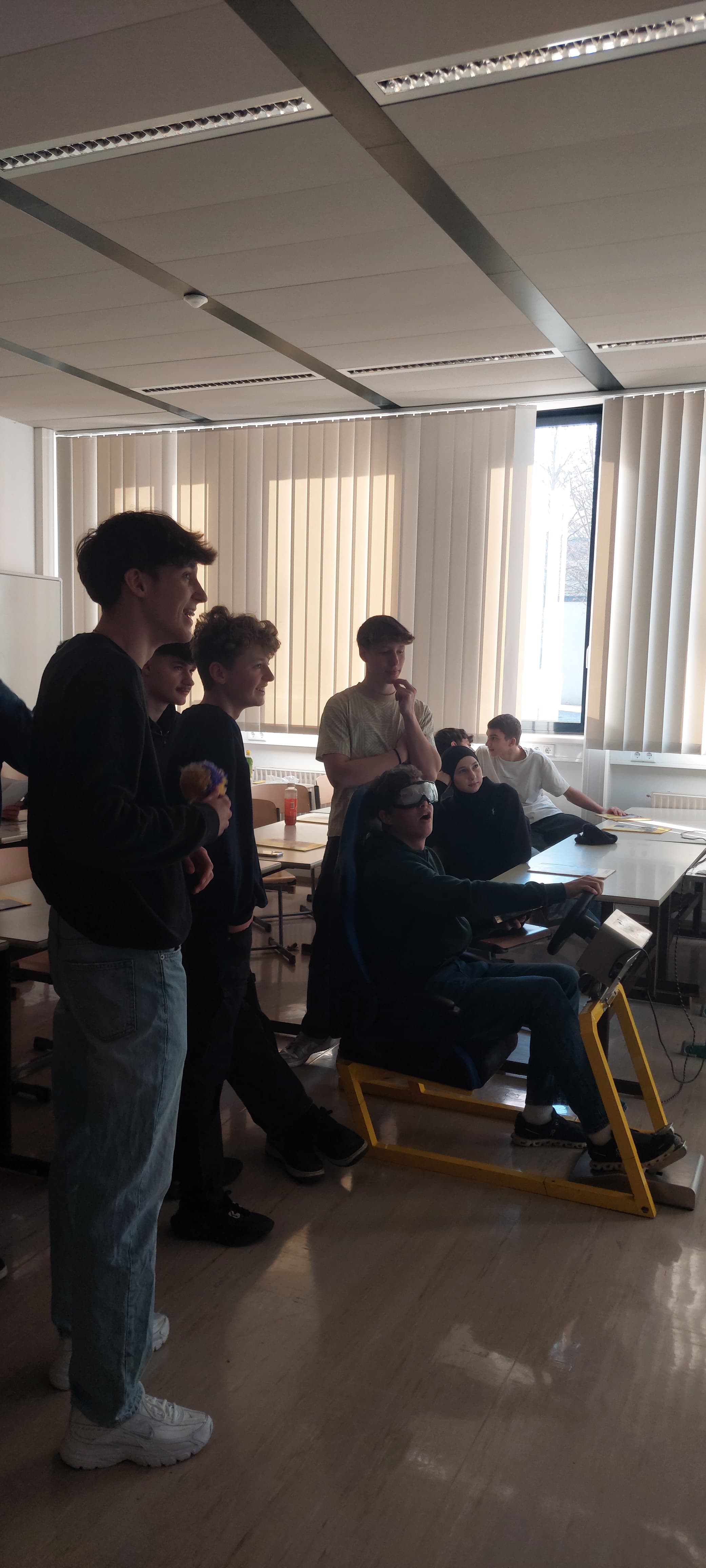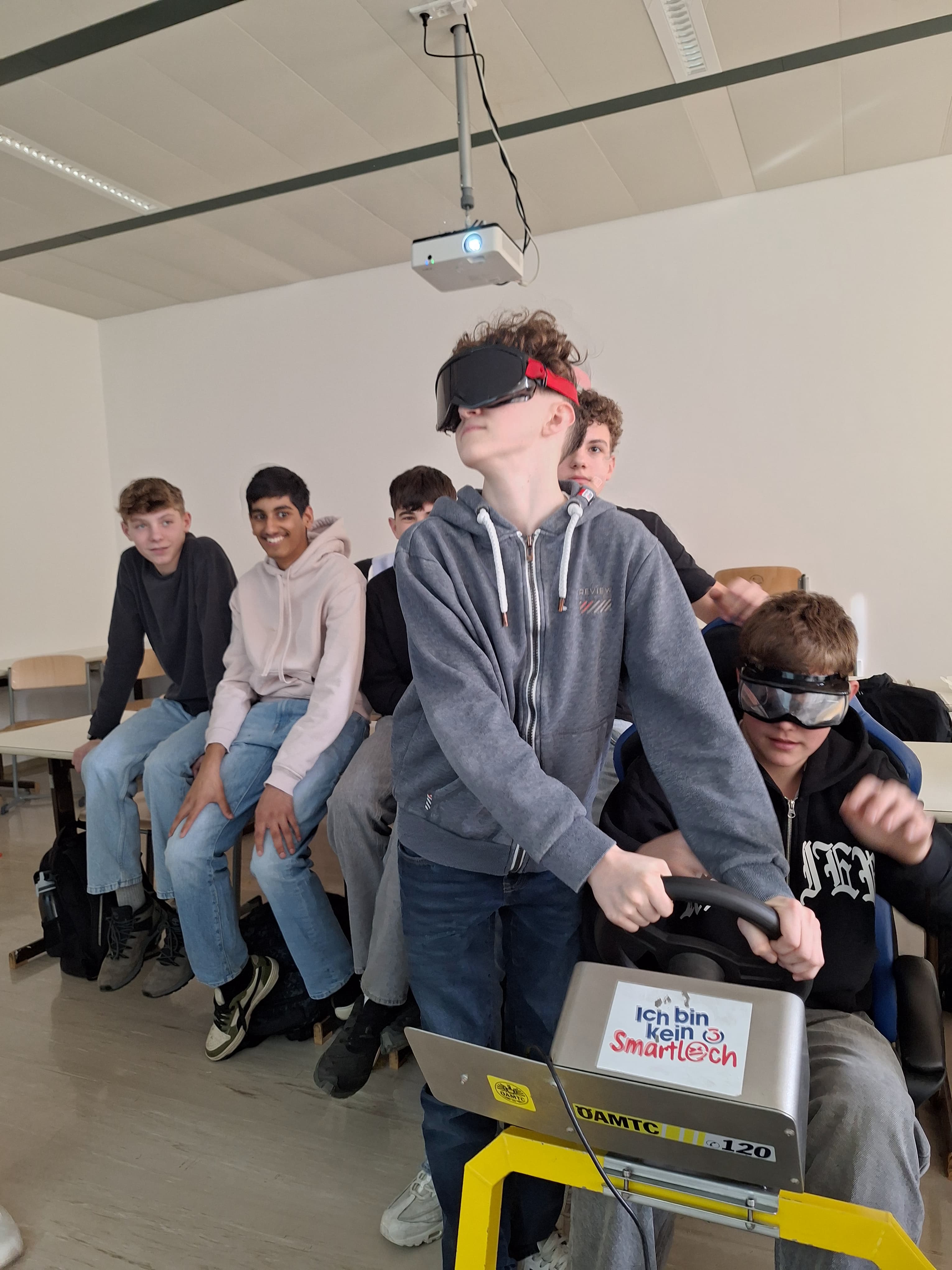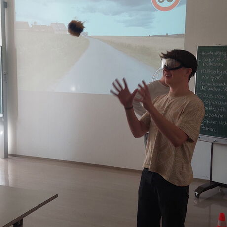 Besonders eindrucksvoll konnten die Schülerinnen und Schüler diese Gefahr im Fahrsimulator erleben. Dort wurde simuliert, wie sich die Nutzung von Smartphones oder anderen Ablenkungen während der Fahrt auf die Reaktionszeit und Fahrsicherheit auswirkt. Ergänzend dazu hatten die Teilnehmenden die Möglichkeit, mithilfe von Simulationsbrillen die Auswirkungen von Alkohol auf die Wahrnehmung und Koordination nachzuempfinden. Diese praxisnahen Übungen verdeutlichten, wie schnell gefährliche Situationen entstehen können und welche schwerwiegenden Folgen Unachtsamkeit oder Beeinträchtigungen im Straßenverkehr haben können.