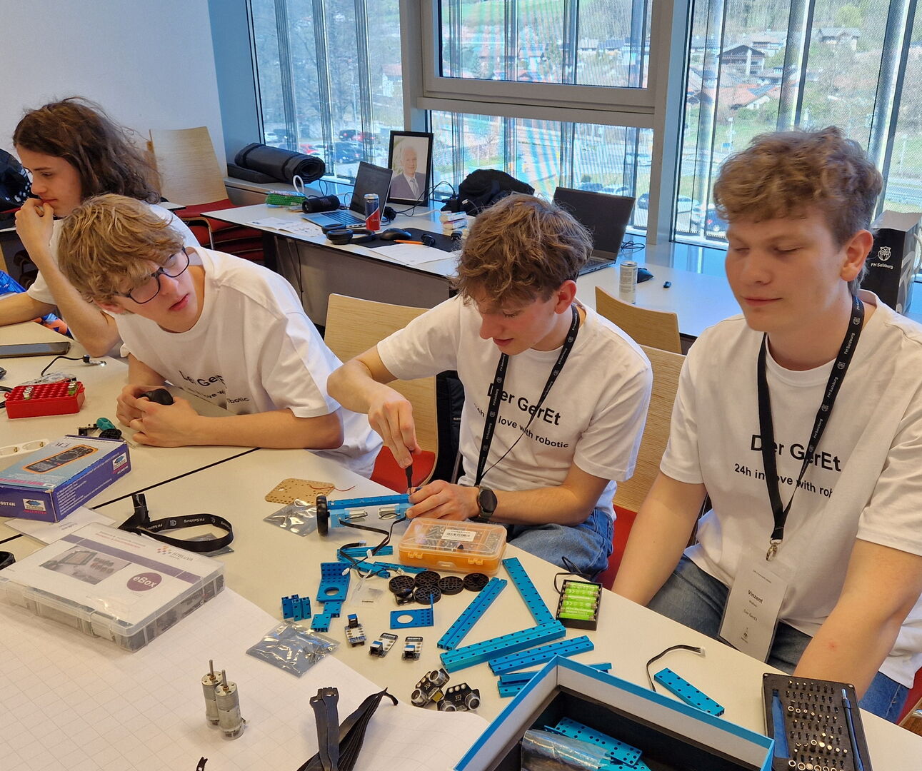Fünf motivierte Schüler der 4BHEL haben die Osterferien kurzerhand verschoben, um am 24-Stunden-Robothon der FH Salzburg teilzunehmen. Ab Freitag Nachmittag hatten die teilnehmenden Teams exakt 24 Stunden Zeit, einen Roboter zu bauen und zu programmieren, der die gestellte Aufgabe autonom, also ohne Fernsteuerung lösen kann. Ziel war, eine durch Bodenmarkierungen festgelegte Rennstrecke zu bewältigen. Dabei musste der Roboter 3 Runden in möglichst kurzer Zeit schaffen. Eine besonders knifflige Herausforderung war, dass zwischendurch für 3 Sekunden ein Boxenstopp außerhalb der Strecke eingelegt werden musste. Anschließend musste der Roboter selbstständig wieder zurück auf die Strecke finden, um das Rennen zu beenden.
