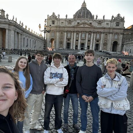 Im Februar war es endlich so weit! Nach intensiver Vorbereitung konnten wir im noch jungen ‘Heiligen Jahr’ der „Ewigen Stadt“ einen Besuch abstatten. Insofern war es für uns SchülerInnen Laura, Martina, Martin, Moritz, Arthur und Max vielleicht auch ein bisschen eine „Pilgerreise“, die uns zu den vier ‚Heiligen Pforten‘ der großen christlichen Kirchen führte.Egal, die Stadt gehörte in diesen Tagen jedenfalls uns!