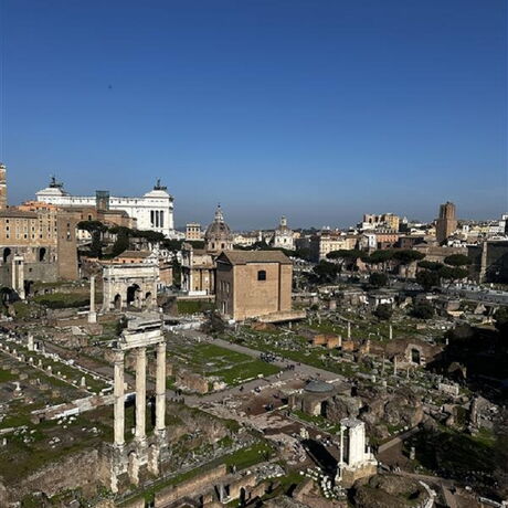 Von den ‘Heiligen Pforten’ der Basilika Santa Maria Maggiore zum Kolosseum führte uns unsere Tour am folgenden Tag. Wir konnten die alten Ruinen der damaligen Gladiatorenkämpfe bewundern und anschließend erkundeten wir das Forum Romanum, die antike Stadt Roms. Herr Damhofer erzählte uns viel über die Geschichte Roms und zeigte uns Rekonstruktionen sowie die beeindruckende Natur auf dem Hügel Palatin.
