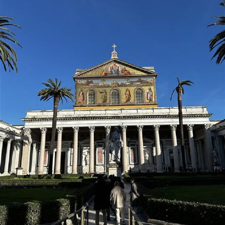 Raus aus der Stadt in Richtung Ostia liegt die Basilika ‘Sankt Paul vor den Mauern’ mit gewaltigen Dimensionen und einer wunderschönen Apsis, wo wir auch durch die nächste - Nummer drei - Porta Santa schritten. Am Aussichtspunkt des Hügels ‘Aventin’ (Basilika Santa Sabina) konnten wir den Sonnenuntergang und den Blick auf die ‘Ewige Stadt’ genießen. Wir ließen uns von der Cucina Romana (der römischen Küche) verwöhnen, und bei toller Stimmung „verirrten“ wir uns abends in ‚le strade della citá‘ … bis wir müde und zufrieden in unserem Hotel Kraft für den nächsten Tag sammelten.