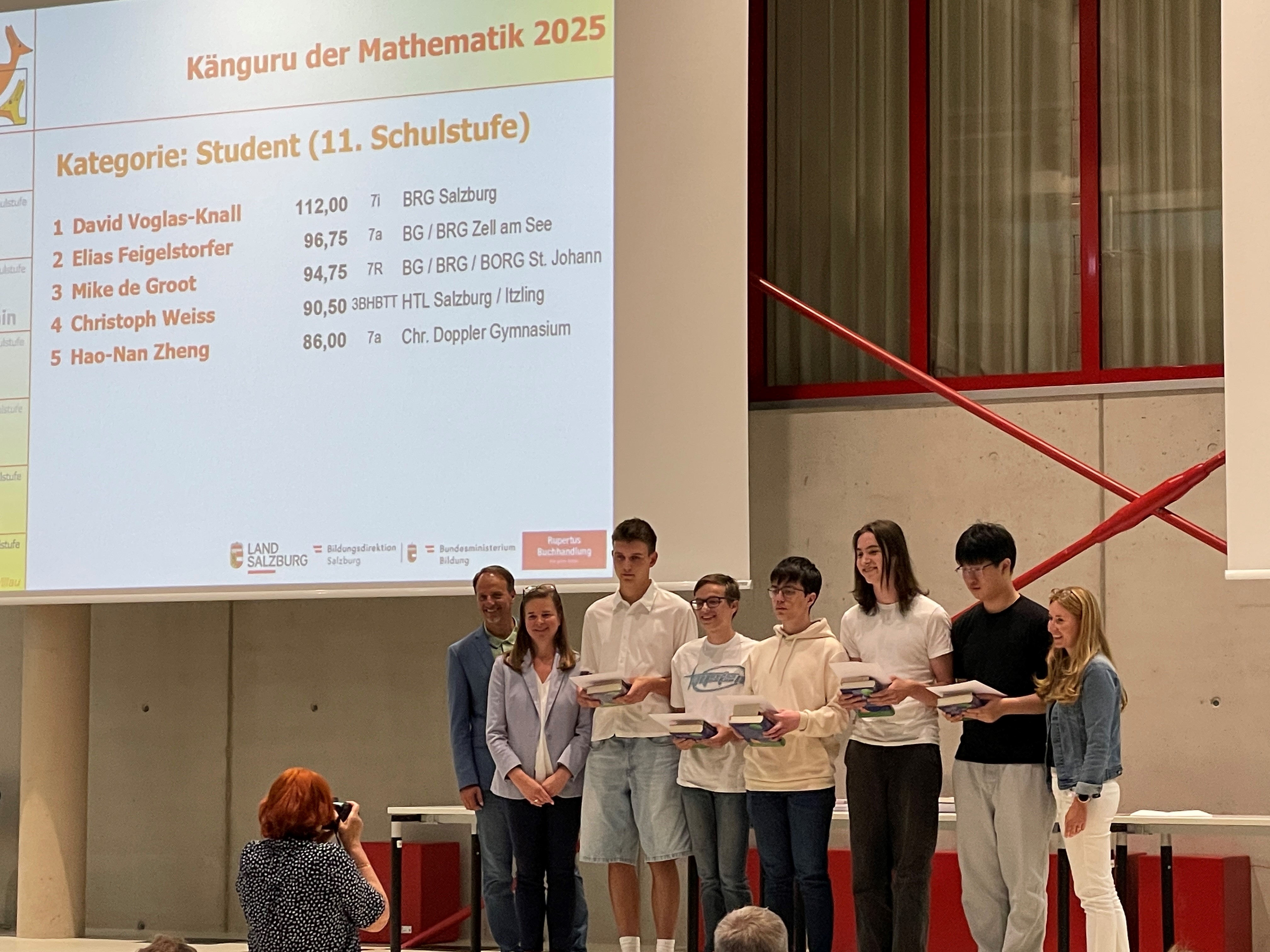 Auch in diesem Jahr nahmen rund 50 Schülerinnen und Schüler der HTBLuVA Salzburg traditionsgemäß am dritten Donnerstag im März am Wettbewerb Känguru der Mathematik 2025 teil. Sechs Schüler schafften es, sich im Bundesland Salzburg in ihrer jeweiligen Jahrgangsstufe unter den besten fünf zu platzieren.