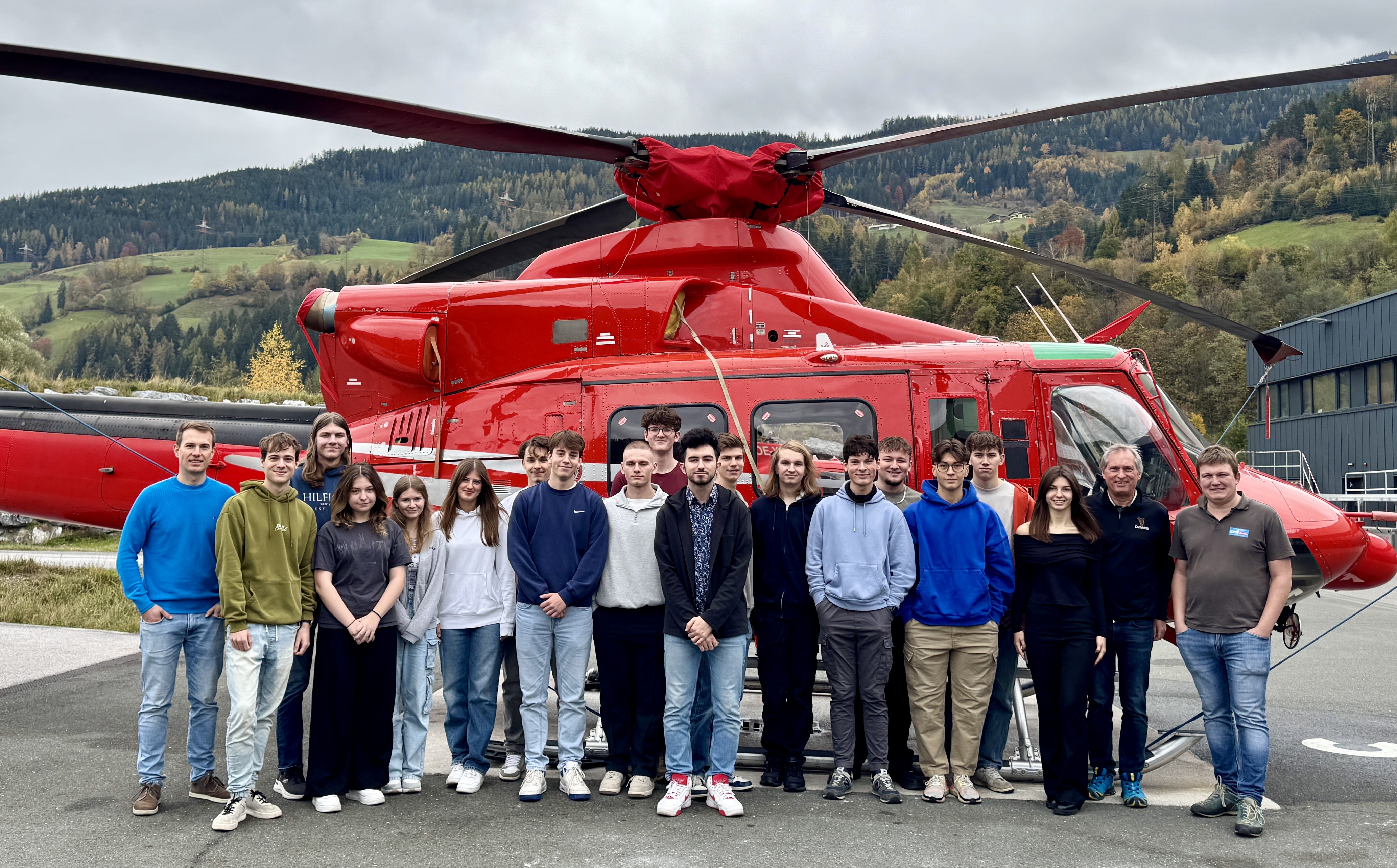 Als eine von nur 10 Schulgruppen pro Jahr gewährte uns die Heli Austria GmbH Einblicke im Headquarter in St. Johann. Der technische Betriebsleiter Herr Gerhardter führte uns mit Freude und Begeisterung durch die Basis. Nach einem Vortrag über die Firma mit 250 Mitarbeitern und etwa 40 weltweit operierenden Hubschraubern, durften wir in der Halle Einblicke in die Hubschraubertechnik und speziell Avionik nehmen. Auch die Räume der (abwesenden) Rettungscrew durften wir betreten, wo wir auch die NVG (Nachtsichtbrille) für Piloten erklärt bekamen. Nach sehr interessanten 3.5 Stunden spazierten wir zurück nach Bischofshofen. Kaum zu glauben, wie enorm sich die ehemals kleine Helicopter-Firma zu einem internationalen Player entwickelt hat. Für Abgänger unserer HTL (v.a. MB, ET/ EL), die sich die Arbeit in einem Team von begeisterten Piloten, Mechanik- und Avionik-Spezialisten wünschen, ist die prosperierende Firma in St. Johann sicher eine Überlegung wert.