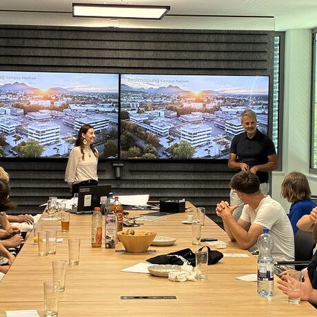 Im Zuge eines anschließenden Rundgangs wurden die Büroräumlichkeiten der Fa. Goldbeck Rhomberg, die Energieversorgung des gesamten Gewerbehofs und eines der Hallengebäude besichtigt. Ein besonderes Erlebnis war der Einblick in laufende Theater- und Tanzproben in den ebenfalls im Gewerbehof befindlichen Proberäumlichkeiten.