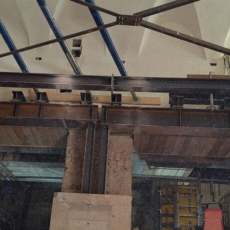 Anhand der Umbauarbeiten für die diversen Stiegenhäuser im Gebäudebestand wurden die Schwierigkeiten des Arbeitens im denkmalgeschützten Gebäudebestand und beim Einbau umfangreicher Unterfangungen bei beengten Platzverhältnissen verdeutlicht.