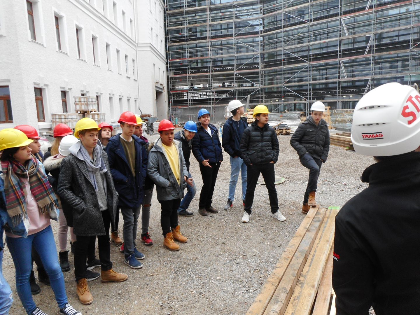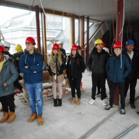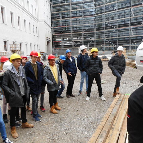 Am 02.02.2018 wurde von den Schülerinnen und Schülern der 2AHBTH in Begleitung der Lehrkräfte Dipl.-Ing. Dr. Paul Raspotnig und Arch. Dipl.-Ing. Bernhard Kurzweil die Baustelle „Um- und Zubau Justizgebäude Salzburg“ besichtigt. Die Führung wurde dankenswerter Weise von Herrn Bmstr. Ing. Wolfgang Lindner, dem Bauleiter der Strabag, hervorragend organisiert. Den Kontakt stellte Herr Georg Hlawna her, der bei gegenständlicher Baustelle die Estrich- und Terrazzoarbeiten ausführt und einen Sohn in der betreffenden Klasse hat - auch ihm herzlicher Dank.