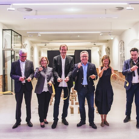 Bild 2 (v.li. n.re.): Bgm. Harald Preuner, Andrea Brandtner (Bereichssprecherin für Soziales und Wohnbau), Planungsstadtrat Johann Padutsch, Lhstv. Heinrich Schellhorn, Gudrun Fleischmann-Oswald (Vorsitzende Initiative Architektur), Roman Höllbacher (Künstlerischer Leiter)