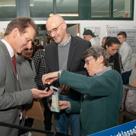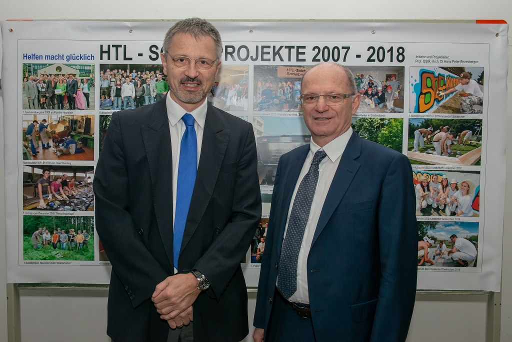 Der Abschluss des 10. Sozialprojekts wurde in der HTL Salzburg würdig gefeiert: Arch. Dipl.-Ing. Hans Peter Enzesberger begrüßte die Ehrengäste aus der Wirtschaft, der Politik und den Institutionen: