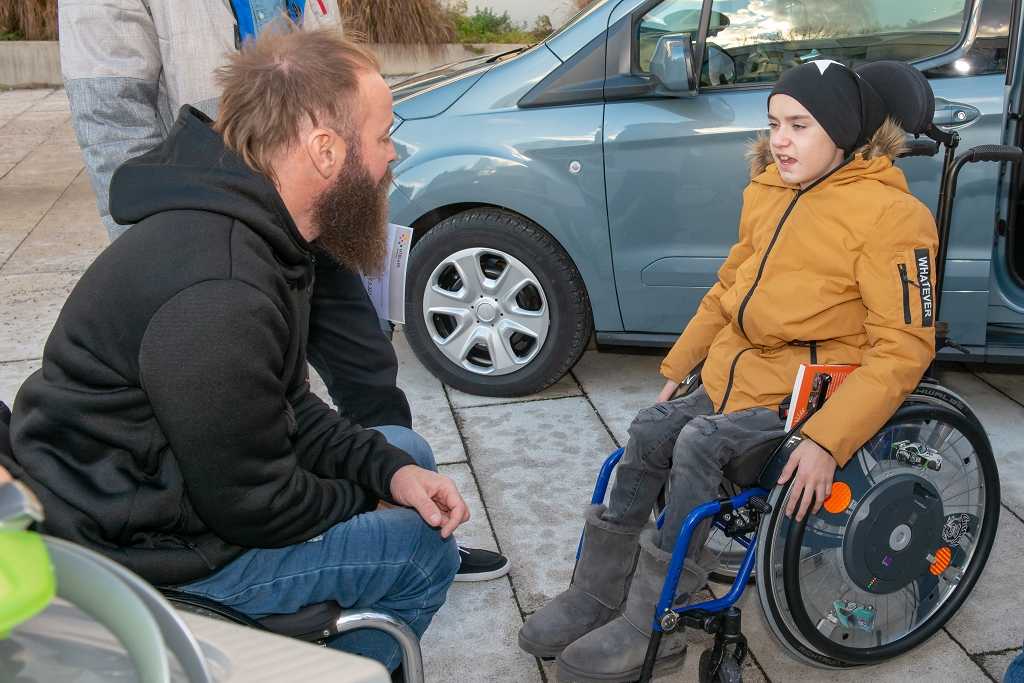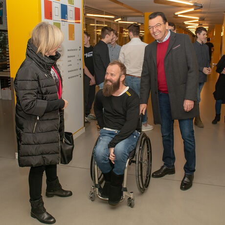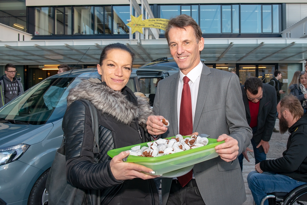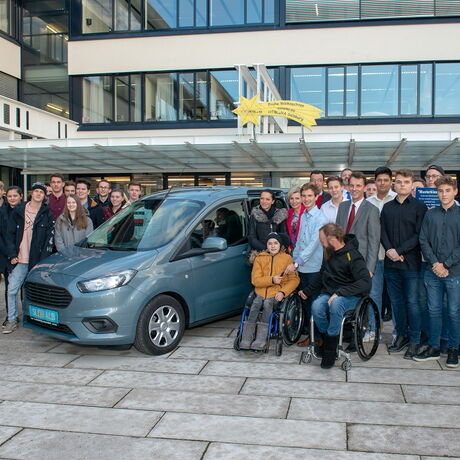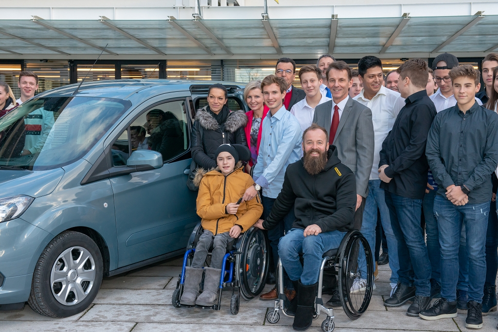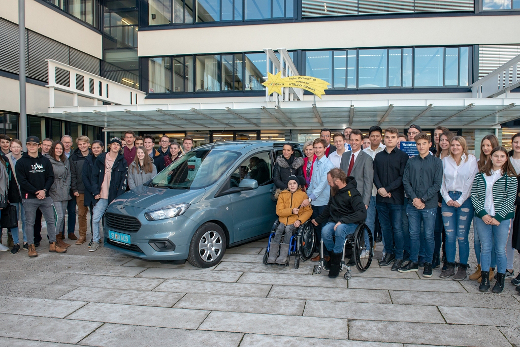 Krönender Höhepunkt der Dankesfeier war die Schlüsselübergabe: Elias Stadler, Schulsprecher der HTL Salzburg, übergab den Autoschlüssel für den PKW der Marke Ford Tourneo Courier an Noah Fenninger. Herzlichen Dank an Ford Austria und an die Firma Lampelmaier aus Mattsee, die die Anschaffung des behindertengerechten PKWs mit 5.000 Euro unterstützten.
