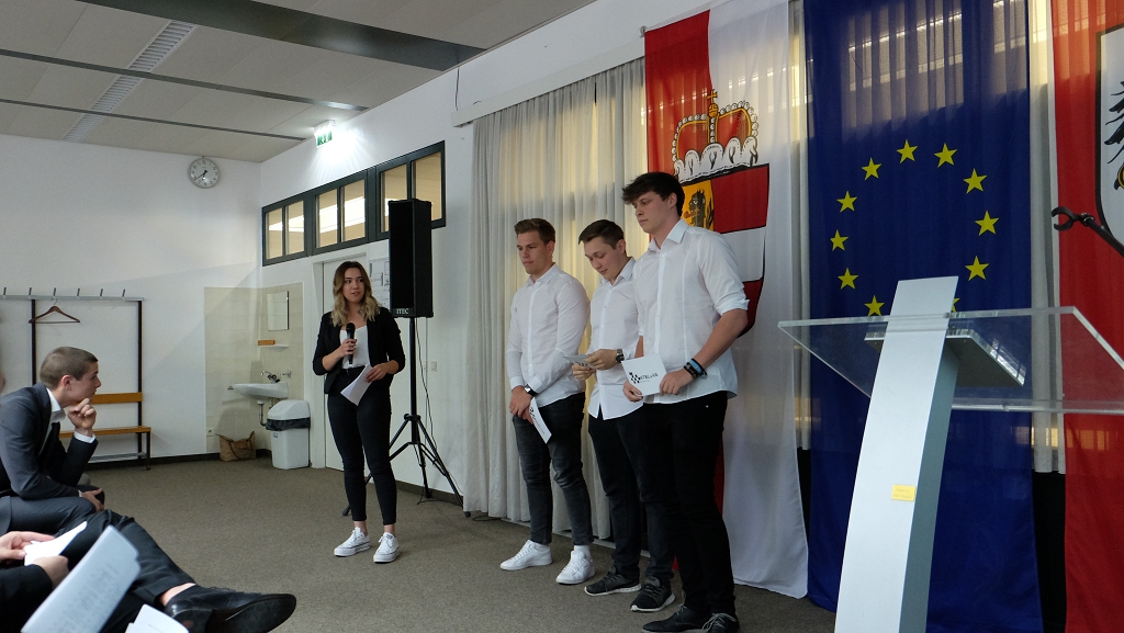 Durch die Präsentationen führten Sofie Stöllinger und Paul Stock (5AHBTH, 14. 5. 2019), Lara Rezo und Dorian Vitztum (5BHBTT, 14. 5. 2019) sowie Martina Müller und Bernhard Salchegger (5CHBTH, 15. 5. 2019).