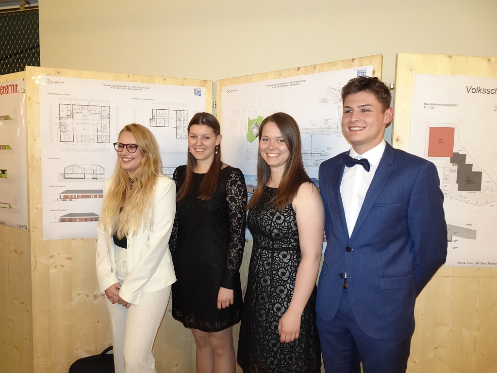 22 Diplomarbeits-Teams zeigten technisch anspruchsvolle Problemlösungen und architektonisch spannende Konzepte, darunter die Neuplanung des Kindergartens und der Volksschule in Anif, die Erschließung eines Gewerbegebietes in Aupoint und ein Hotelzubau in Mühlbach am Hochkönig. Den Projektpartnern, Familien und Freunden wurden interessante Einblicke in die Diplomarbeiten vermittelt.