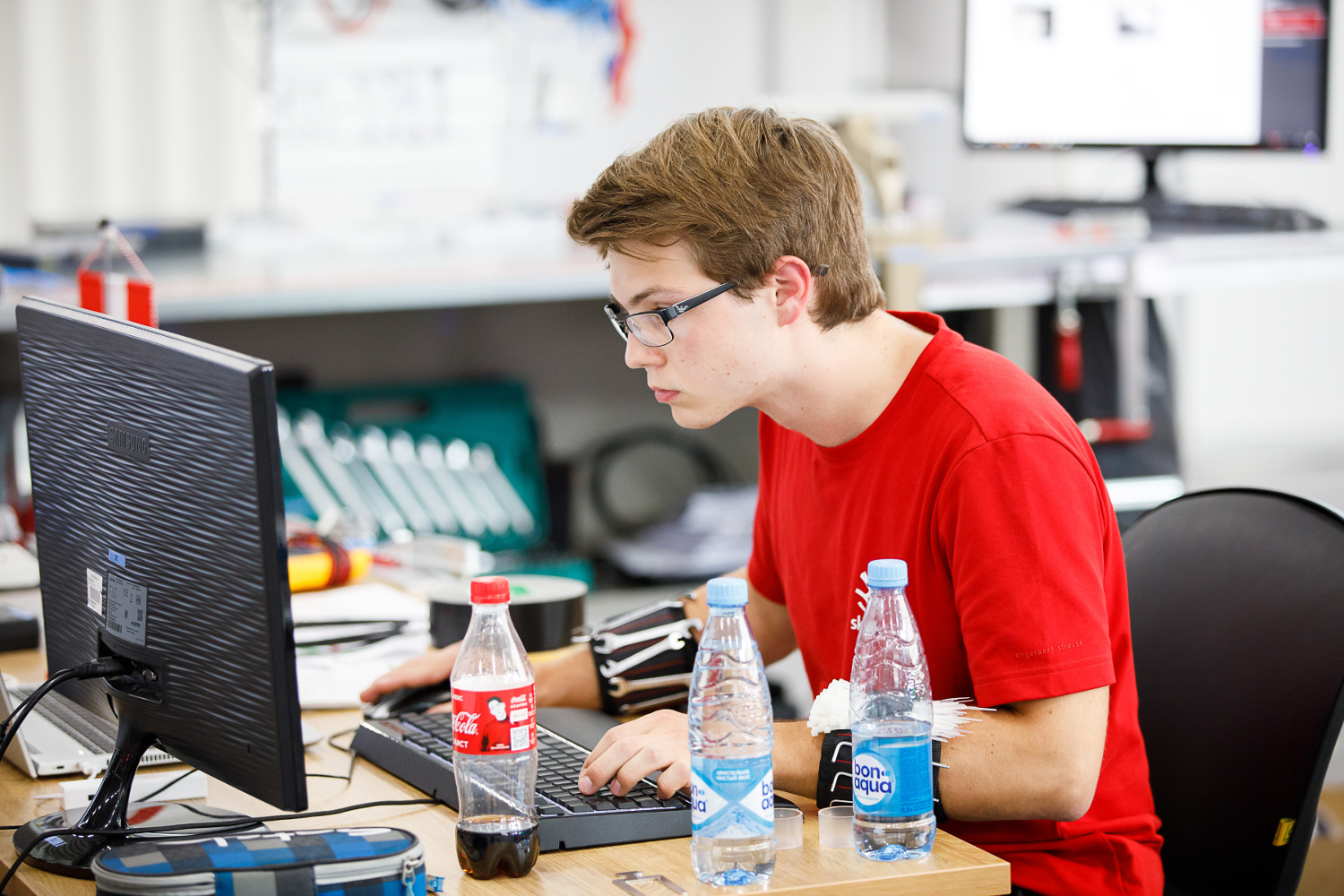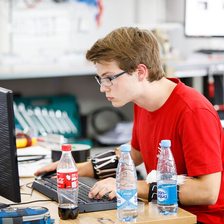 - Jakob Buchsteiner beim Programmieren der Steuersoftware