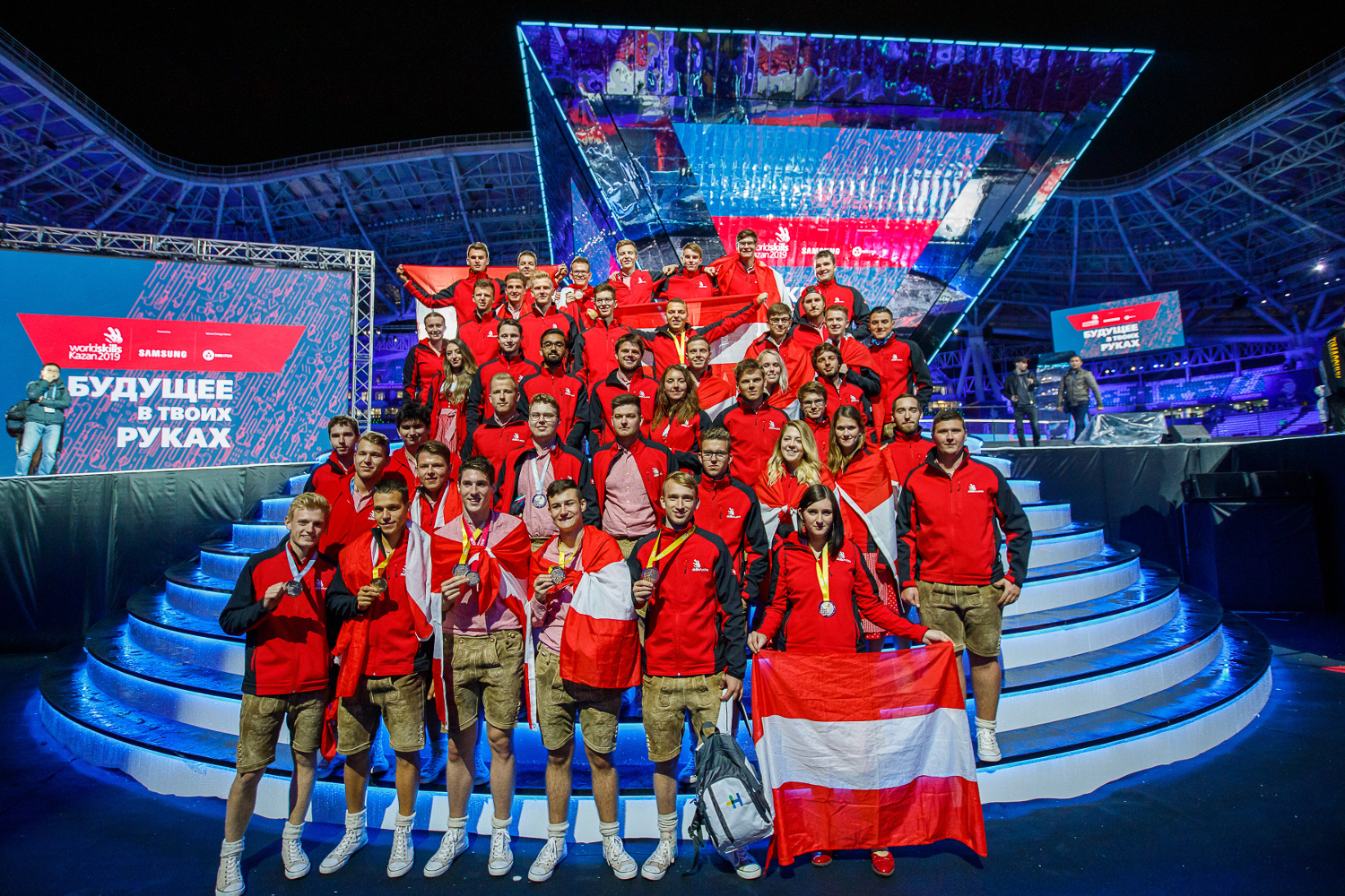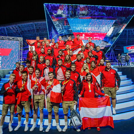 - Das Team Austria mit 46 "Competitors" aus verschiedenen Berufsfeldern bei der Siegerehrung