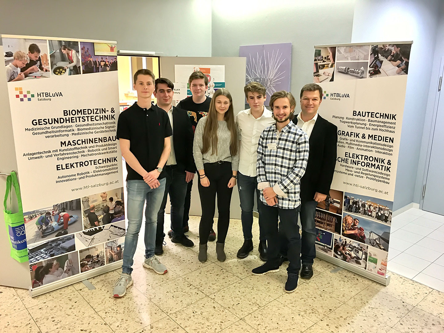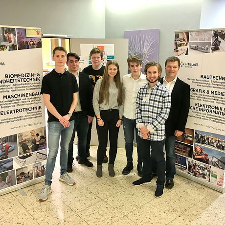 von links nach rechts: Tobias Gangl (5BHET), Lauren Holzner (4CHEL), Wolfgang Mühlberger (2BHMBU), Alexandra Schröckenfuchs (3AHEK), Thomas Nestaval (3CHBTH), Elias Stadler (5BHBTT), Prof. Karl Haas