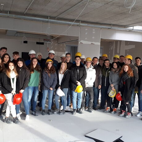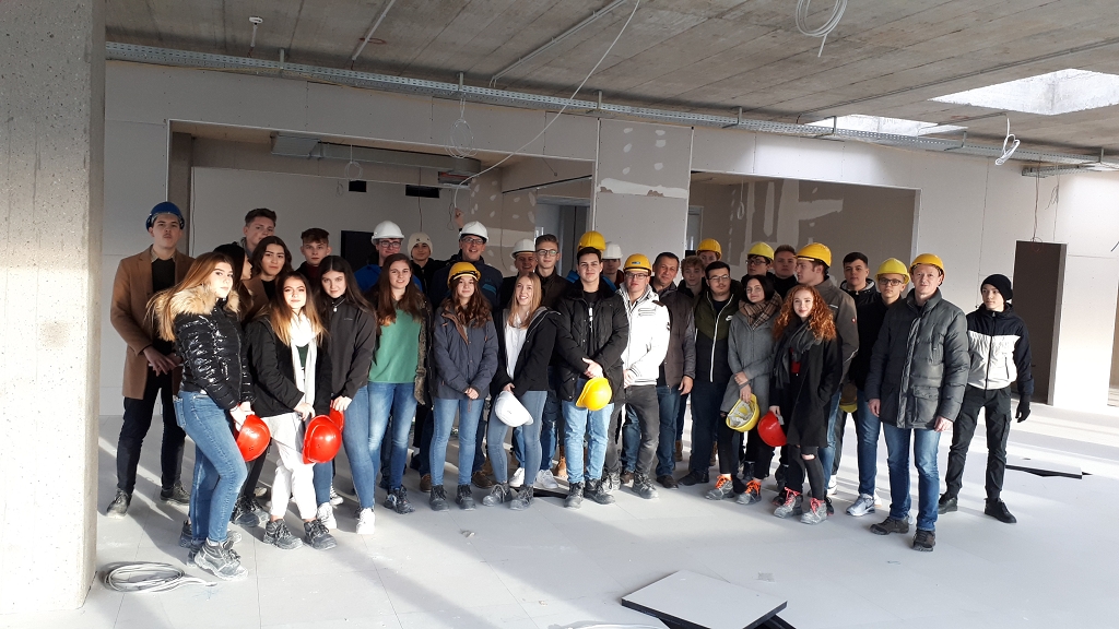 In Begleitung der Lehrkräfte Arch. Dipl.-Ing. Bernhard Kurzweil und Dipl.-Ing. Dr. techn. Paul Raspotnig besichtigten die Schülerinnen und Schüler der 2CHBTH die Baustelle eines Bürogebäudes in der Wasserfeldstraße 1 in Salzburg-Itzling. Die Baustelle bot sich gut an, weil sie in unmittelbarer Nähe zur Schule liegt. Organisiert und hervorragend geleitet wurde die Führung auf der besichtigten Baustelle dankenswerter Weise von Herrn Grabovac, der dort als Bauleiter tätig ist.