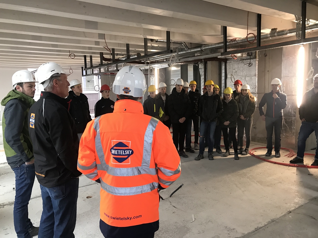 Die Schülerinnen und Schüler der 3AHBTH und der 3BHBTT hatten im Zuge dieser Baustellenbesichtigung die Gelegenheit, Einblicke in den aktuellen Baufortschritt sowie in die verschiedenen technischen Details dieser Bauweise zu gewinnen.