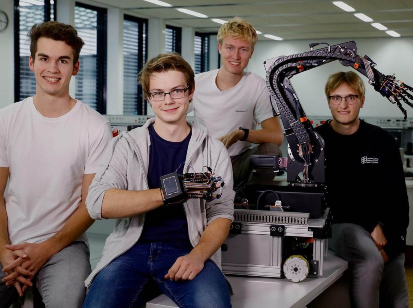 Sebastian Neuhofer, Jakob Buchsteiner, Thomas Eibl und Moritz Taferner (v.l.n.r.) haben das Projekt eigenständig geplant und umgesetzt, von der Idee und Konzeption des 3D-gedruckten Handschuhs bis zur Betriebs-Software.