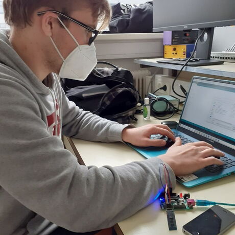 André und Hannes: " Unser Projekt ist gerade in Corona-Zeiten besonders gefragt: hochempfindliche Sensoren messen die C02-Sättigung in geschlossenen Räumen. Ein Alarmsystem warnt vor zu hohen Werten. Durch die Netzwerkfähigkeit werden die Daten auf der Website visualisiert und im Kontrollzentrum informieren LEDs in den Ampelfarben über die aktuellen Messungen."