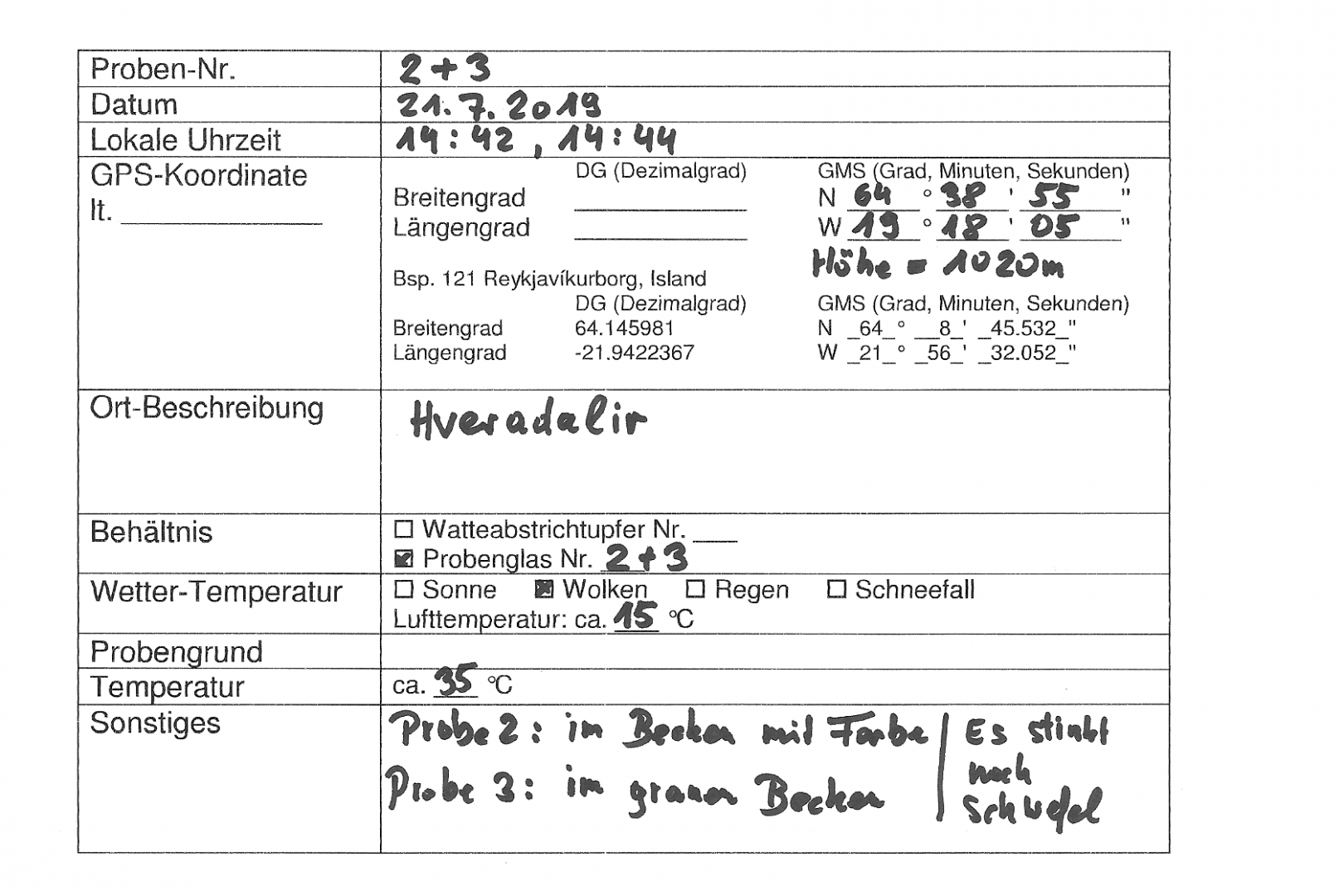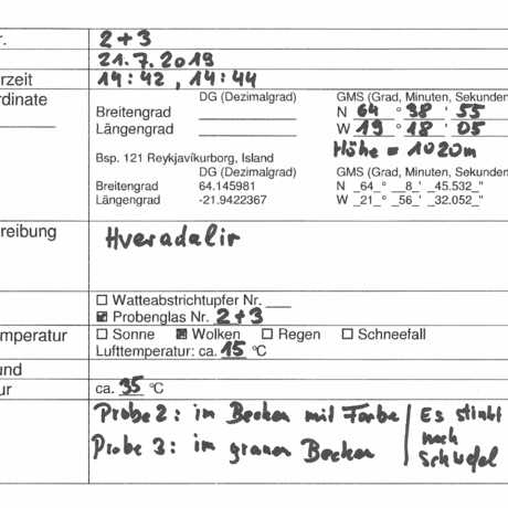 The precise documentation by Mr Steiner, who, while gathering the samples, had noted important data such as temperature, time, weather and personal impressions like colour and odour, was very helpful during the analysis and especially when comparing the results of the different cultures.