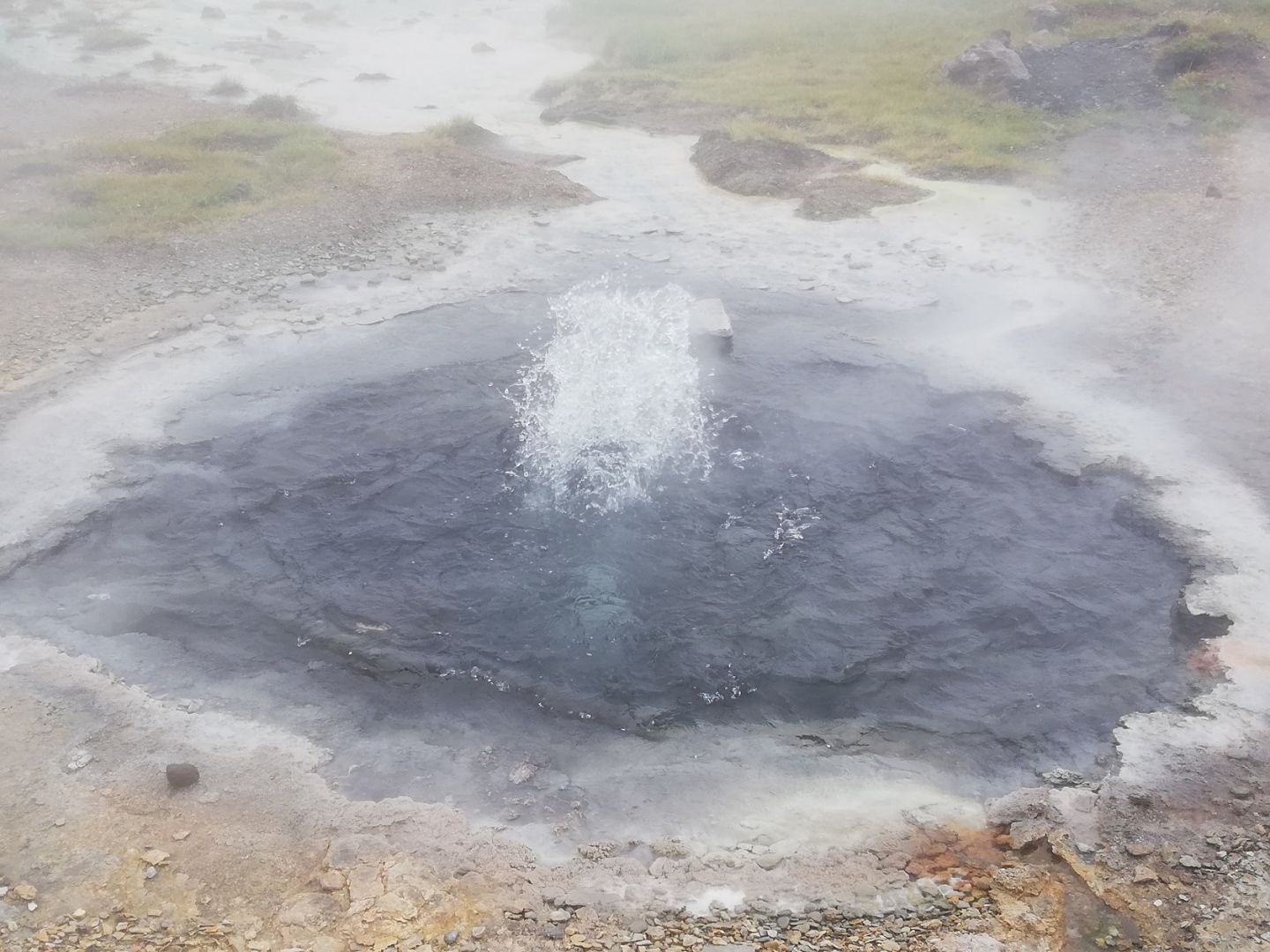Wir nahmen die Petrischalen aus dem Brutschrank und unmittelbar konnten wir eindeutige Muster auf der Oberfläche des Nähragars erkennen. Offensichtlich bildeten sich Bakterienkolonien. Damit wiesen wir die Existenz von thermophilen, also wärmeliebenden, Mikroorganismen in den aus Island mitgebrachten Proben nach.