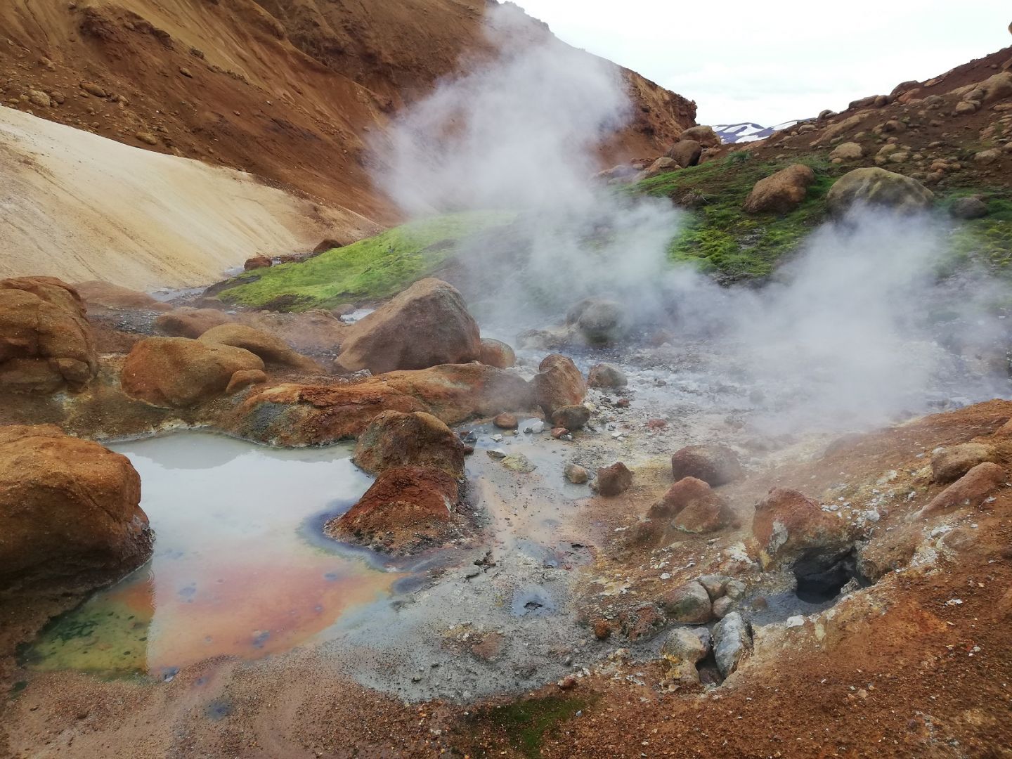 Unser Abteilungsvorstand, Herr Prof. Karl Heinz Steiner (Elektronik und Biomedizin- & Gesundheitstechnik), brachte uns selbst gesammelte Bakterienproben aus isländischen Fumarolen (vulkanische Dampfaustrittsstellen in der Erdkruste) für unseren Laborunterricht mit. Jetzt hatten wir endlich die Möglichkeit, mithilfe einer Aufbereitung und Analyse der Proben den beiden Fragen auf den Grund zu gehen.