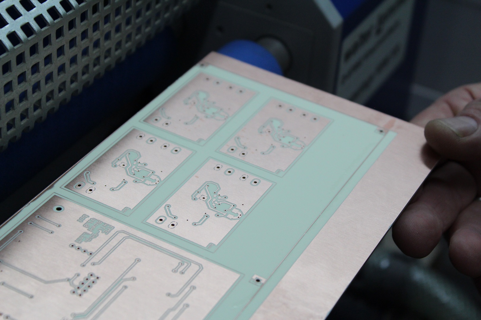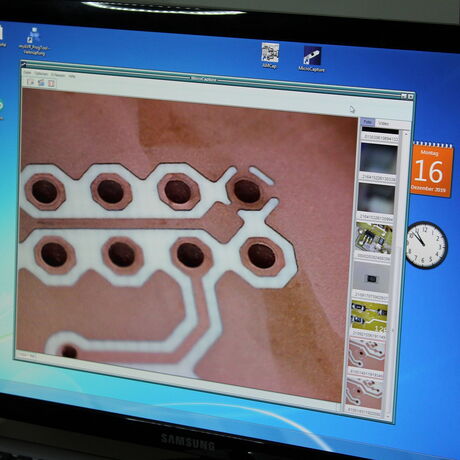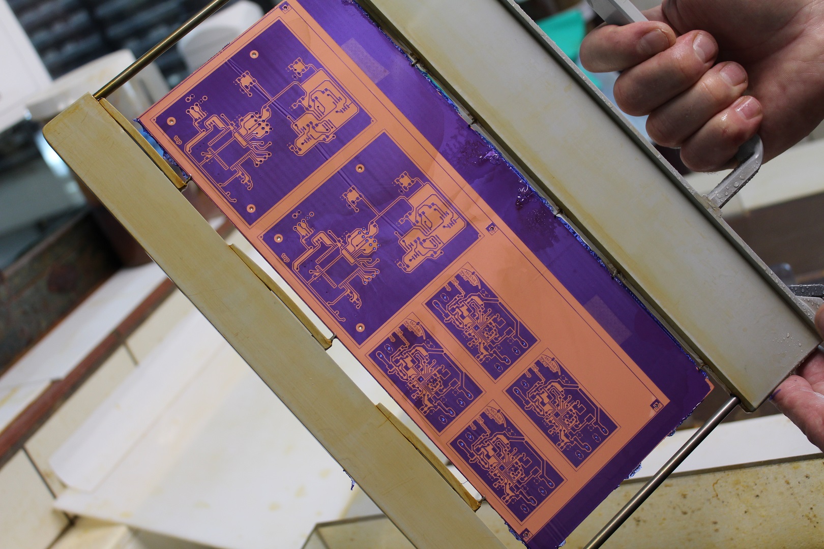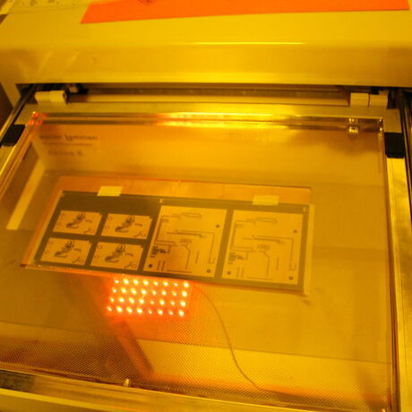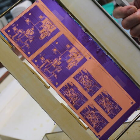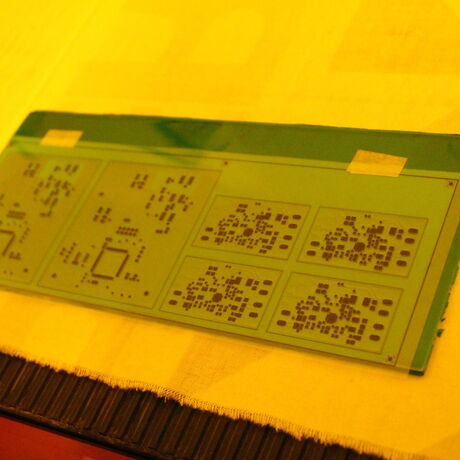 Ab sofort sind wir auch in der Lage, zweiseitige, durchkontaktierte, mit Lötstopplack versehene Leiterplatten auf Keramikbasis im hauseigenen Printlabor herzustellen.