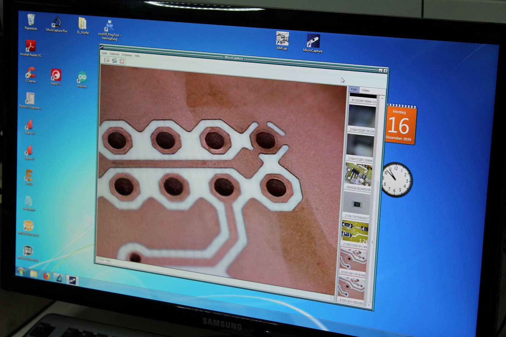 In unserem sgn. Printlabor wurden schon bisher Platinen auf Basis epoxidharzgetränkter Glasfasermatten hergestellt. Am 16.12.2019 ist es uns erstmals gelungen, eine bestimmte Keramik als Basismaterial zu verwenden. Diese besitzt zusätzlich auch hervorragende Hochfrequenz-Eigenschaften.