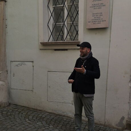 Das Projekt entstand in Zusammenarbeit mit dem Wissenschaftler Martin Kudla von der Universität Frankfurt, der den SchülerInnen zum Abschluss einen großartigen "Robert-Jungk-Tag" in der Stadt Salzburg ermöglichte: Sie schlenderten über das Wohnhaus und die ehemalige Robert-Jungk-Bibliothek zum Literaturarchiv, wo sie Einblicke in Originaldokumente erhielten. Außerdem konnten sie mit Peter Stephan Jungk in Kleingruppen zoomen.