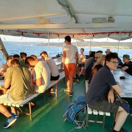 Über die unterrichtsfreie Zeit konnte jeder selbst nach Lust und Laune verfügen. Gemeinsam wurde ein Ausflug in das nahegelegene TRIEST in Italien unternommen. Einen Bummel durch die Stadt, ein „Gelati“ oder einen Espresso. Jedem das Seine. Auch eine Bootsfahrt übers Meer durfte nicht fehlen. Es ging in einem gecharterten, ehemaligen Fischerboot entlang der Küste südwärts Richtung kroatische Grenze in das malerische Dorf PIRAN.