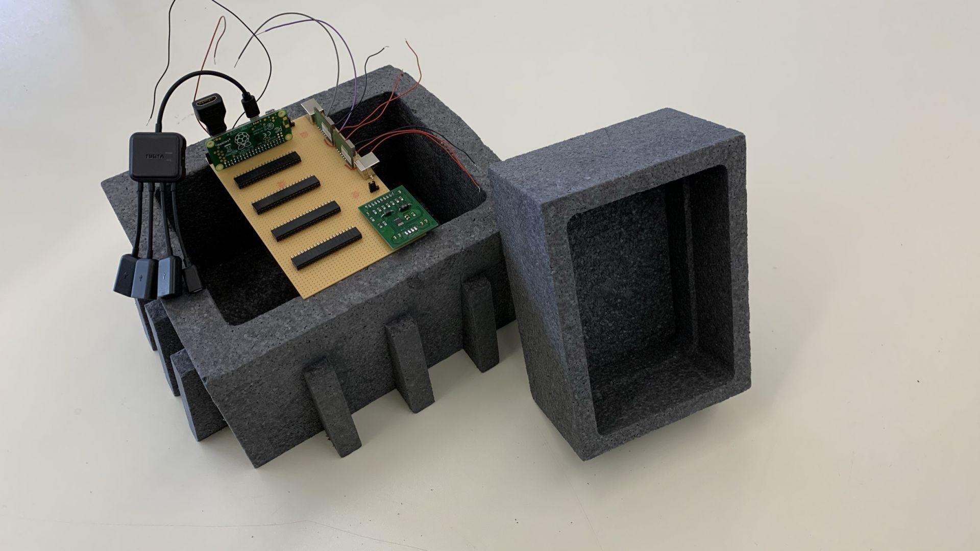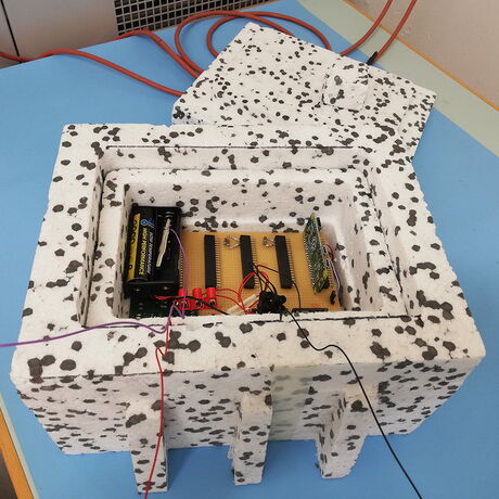 Ziel dieser Tests ist es, frühzeitig die Temperatur in der Sonde unter Flugbedingungen zu messen, wenn die Temperatur außerhalb der Sonde - wie in der Stratosphäre - auf bis zu -56°C absinkt. Auf der Lochrasterkarte befindet sich ein Raspberry Pi Zero. Darauf läuft ein Webserver, der die CPU-Temperatur anzeigt und zusätzlich protokolliert. Somit kann man mit einem Smartphone von außen in die Sonde „blicken“ und die CPU-Temperatur ablesen. Später wird auch die Lochrasterkarte durch eine speziell entwickelte Platine ersetzt.