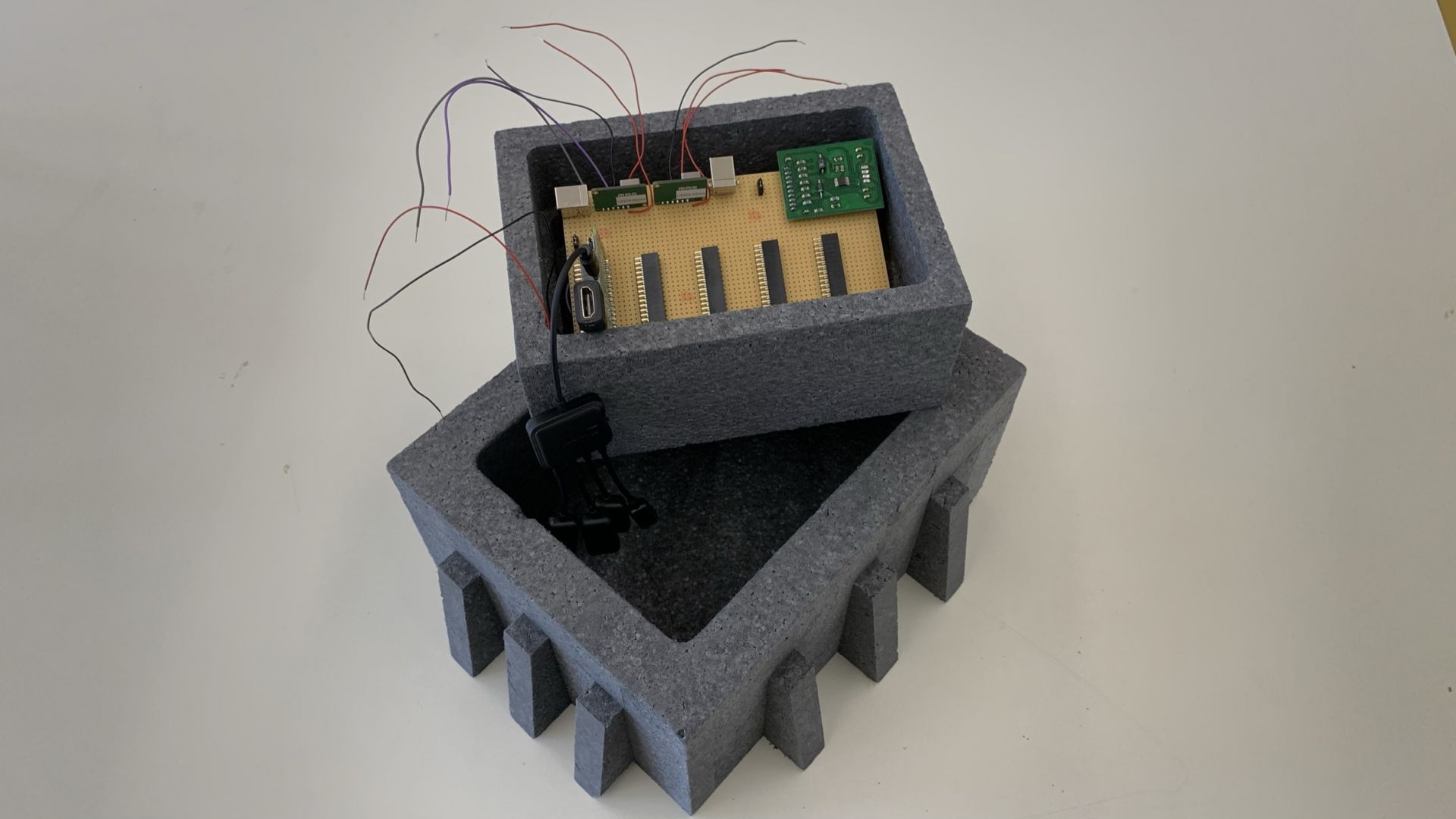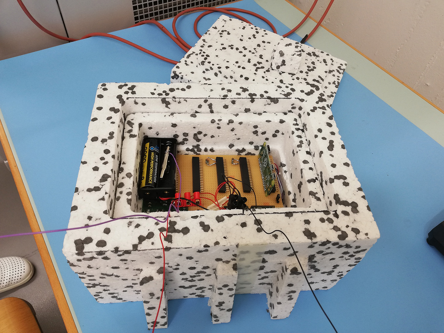 Im Projekt wurden bislang zwei Sonden aus sogenanntem Styropor gefertigt. „Paula“ besteht aus EPS (expandiertem Polystyrol) und ist optisch weiß mit schwarzen Einlagerungen. Da dieses Material im Hause vorhanden war, verfügten wir frühzeitig über ein erstes Modell. Unsere „Black Pearl“ ist von den Maßen gleich wie „Paula“, aber das Material ist leichter und isoliert besser, ist also für den Ausflug in die Stratosphäre besser geeignet. Dieses Material war aber erst später verfügbar.